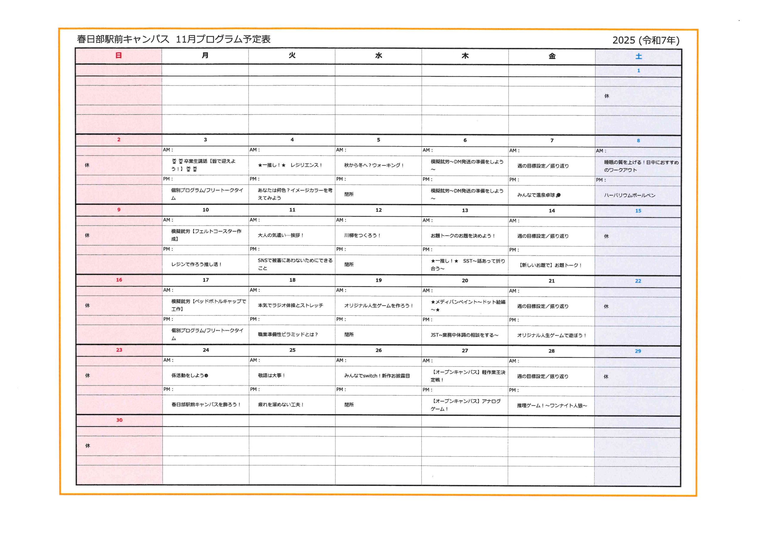 今回は、11月の春日部駅前キャンパスのプログラム📚を皆様にご紹介いたします✨✨✨