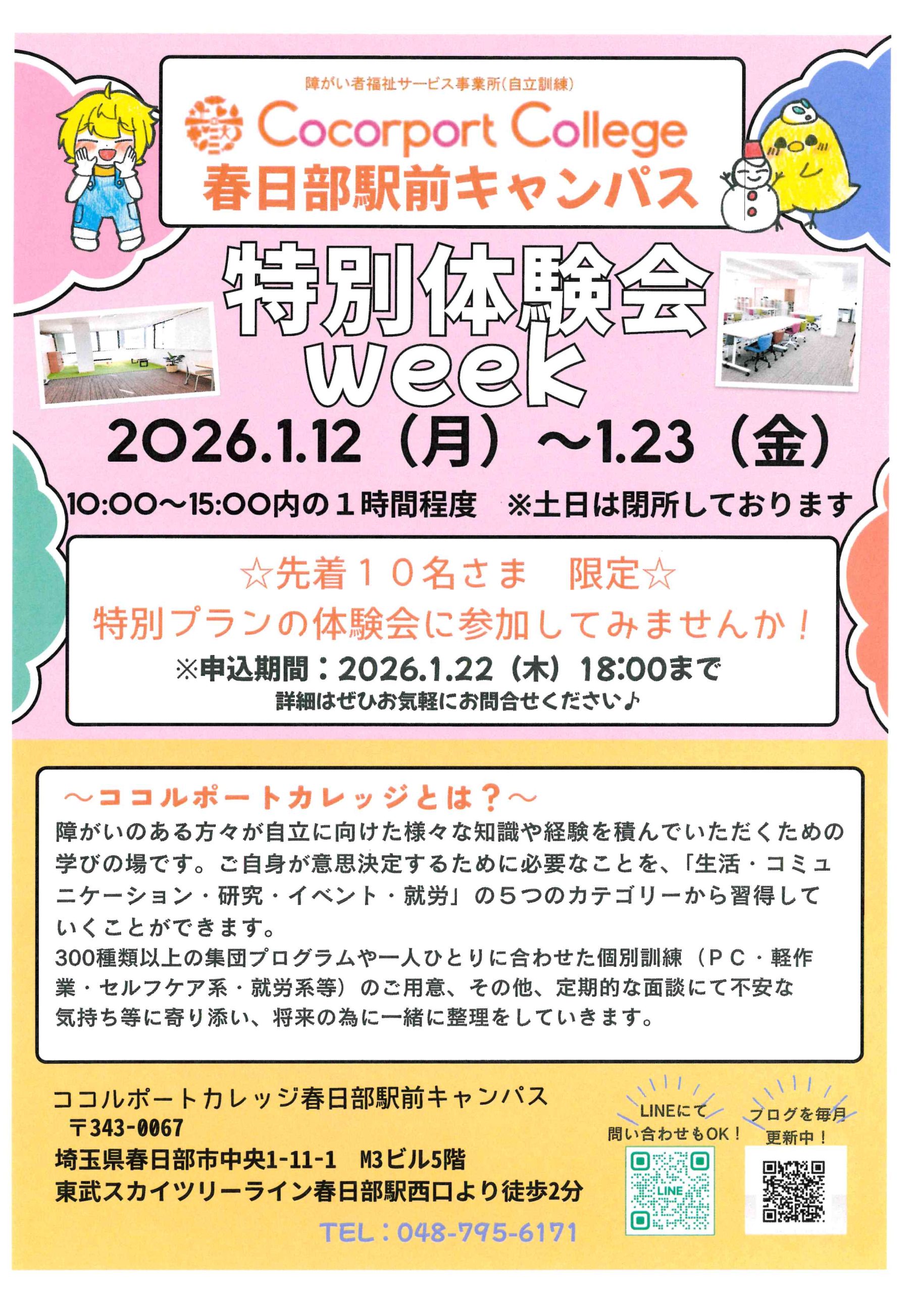 お正月ムードから一早く抜け出す為に・・・春日部駅前キャンパスでは、特別体験会Weekを開催することになりました👏👏👏