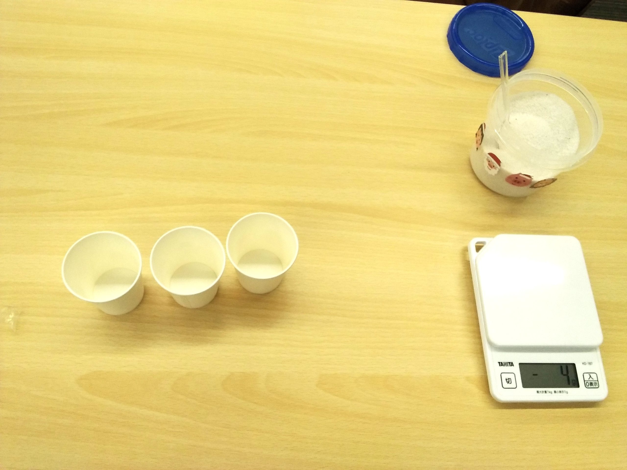 まだまだ続きますよ~、こちらは「スノーゲーム」です!普段は計量の訓練に使用する砂を雪に見立てて、ぴったり60gの砂をカップに入れることができるかに挑戦するゲームです!参加者の中でお一人のメンバーさんが、ぴったり60gをカップに入れることに成功されていらっしゃいました!😮😮👏👏