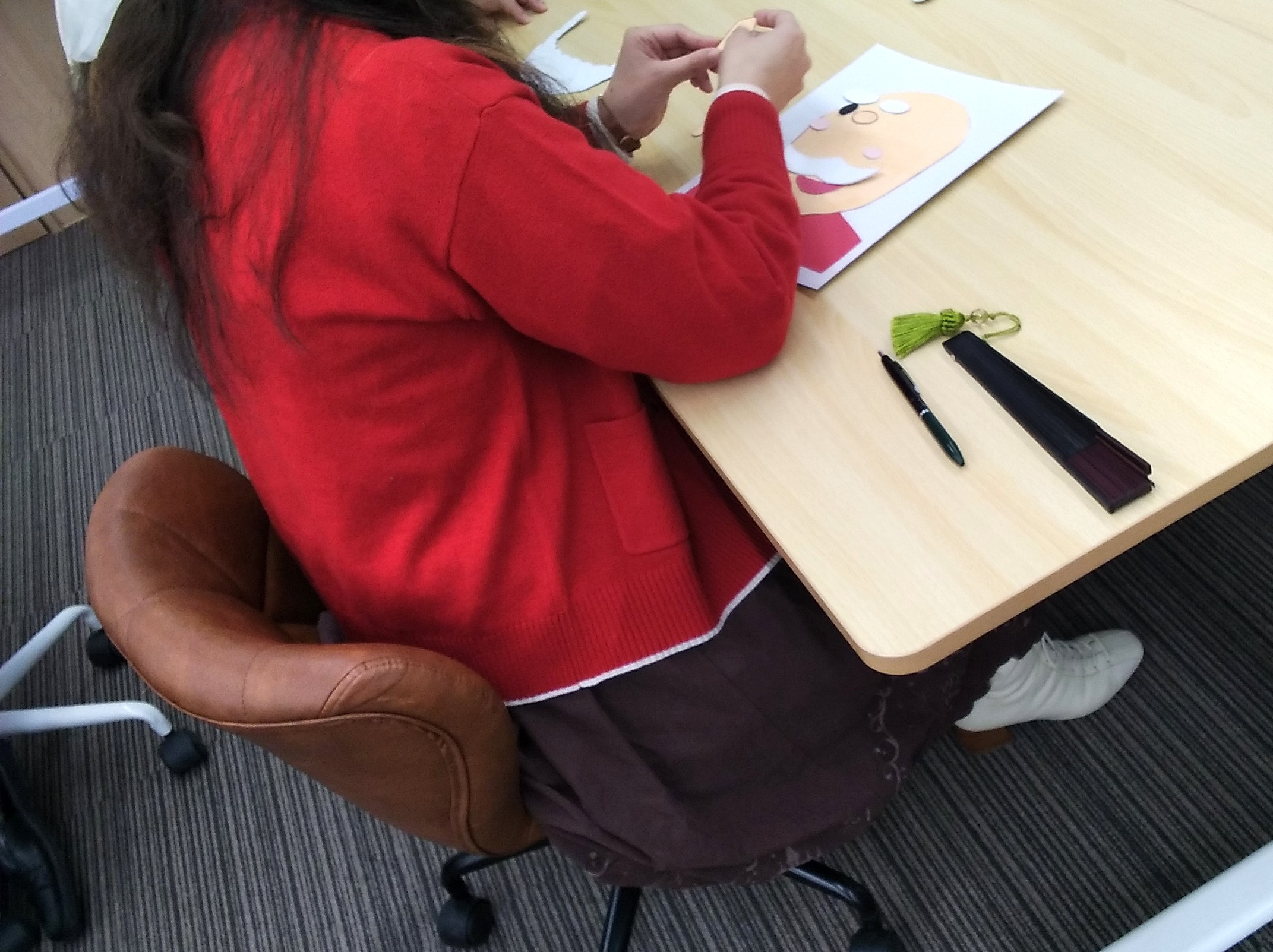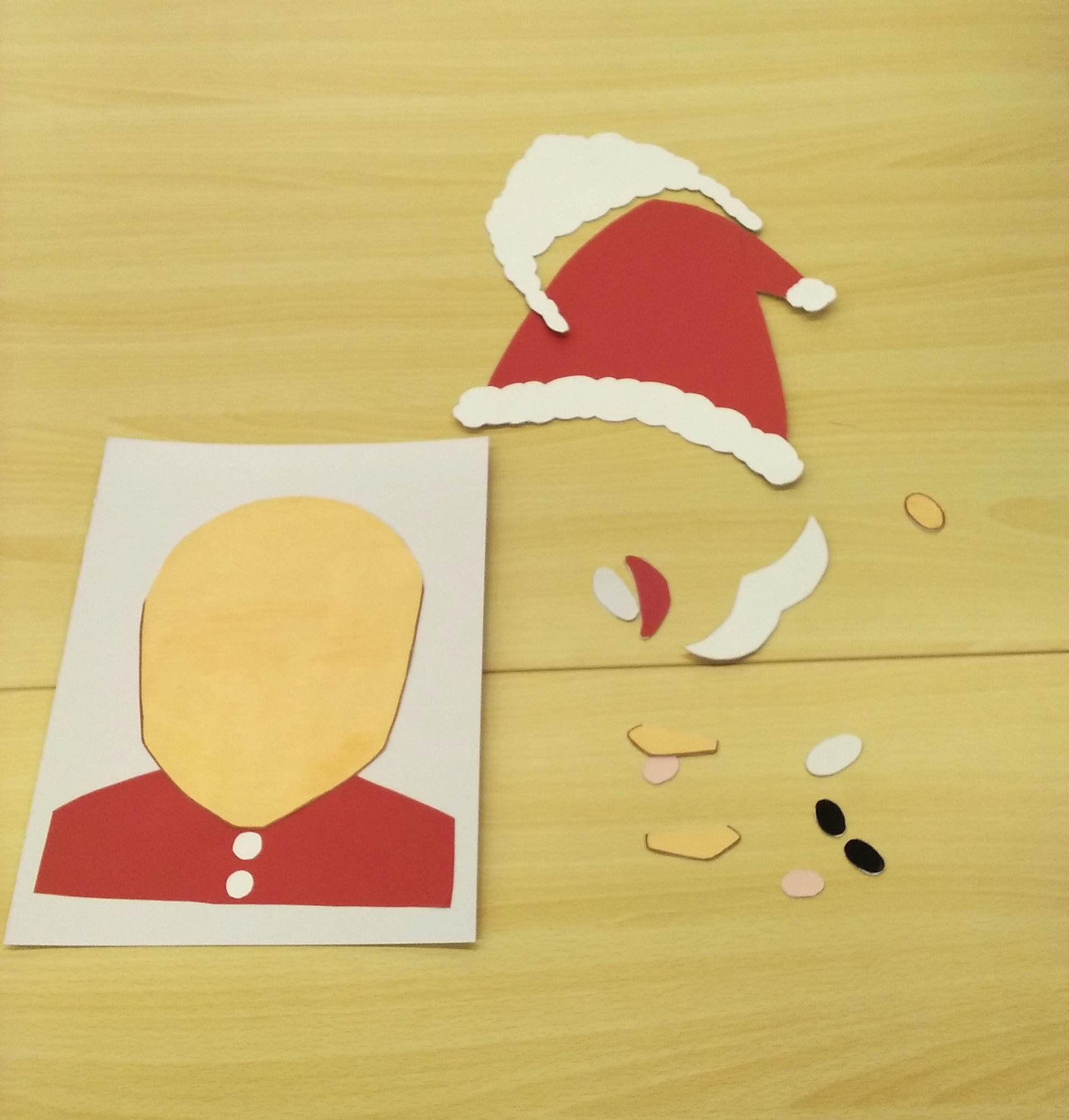 続きまして、「サンタさんの福笑い」のご紹介です!まず参加者は目を瞑り、周りの方のアドバイスを頼りに福笑いを完成させていきます。参加された方は皆さん可愛らしいサンタさんの顔を作られていましたよ~🎅