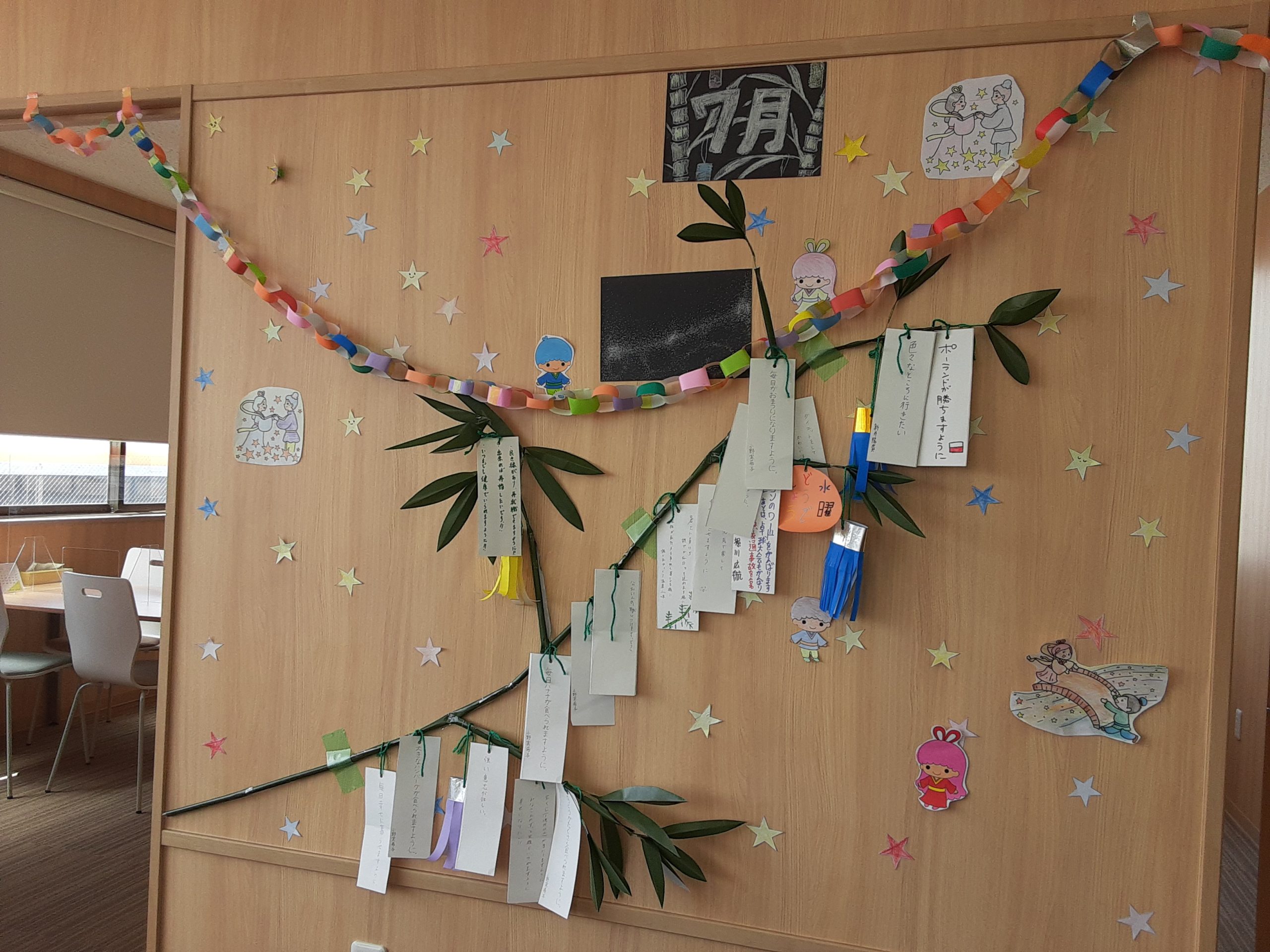 皆様に作成のお手伝いをしていただき素敵に飾ることができ、それぞれにいろんな願い事を描いていただきました。