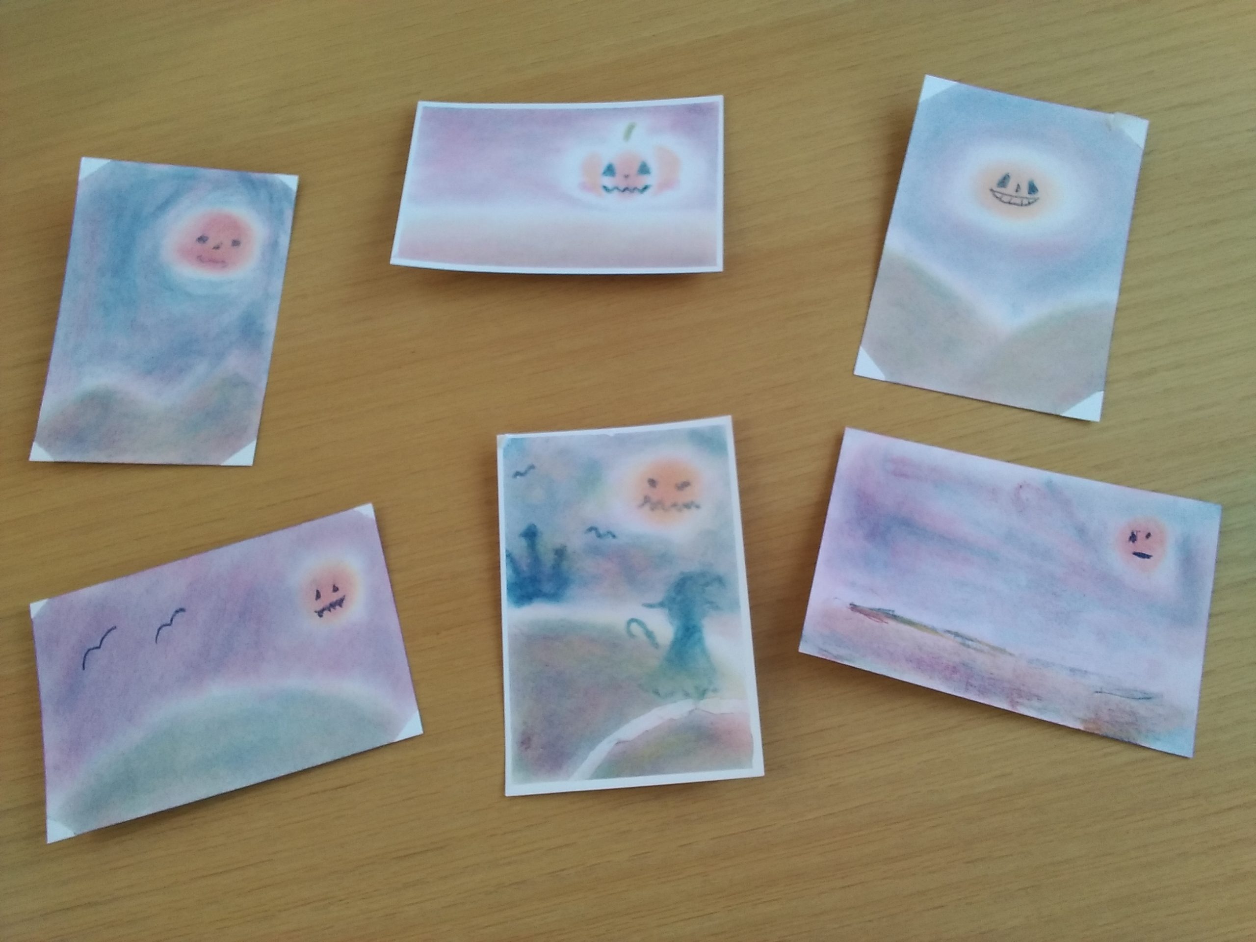 同じ色、同じ手順でも描く人によって仕上がりは様々。素敵なハロウィンの世界になりました。