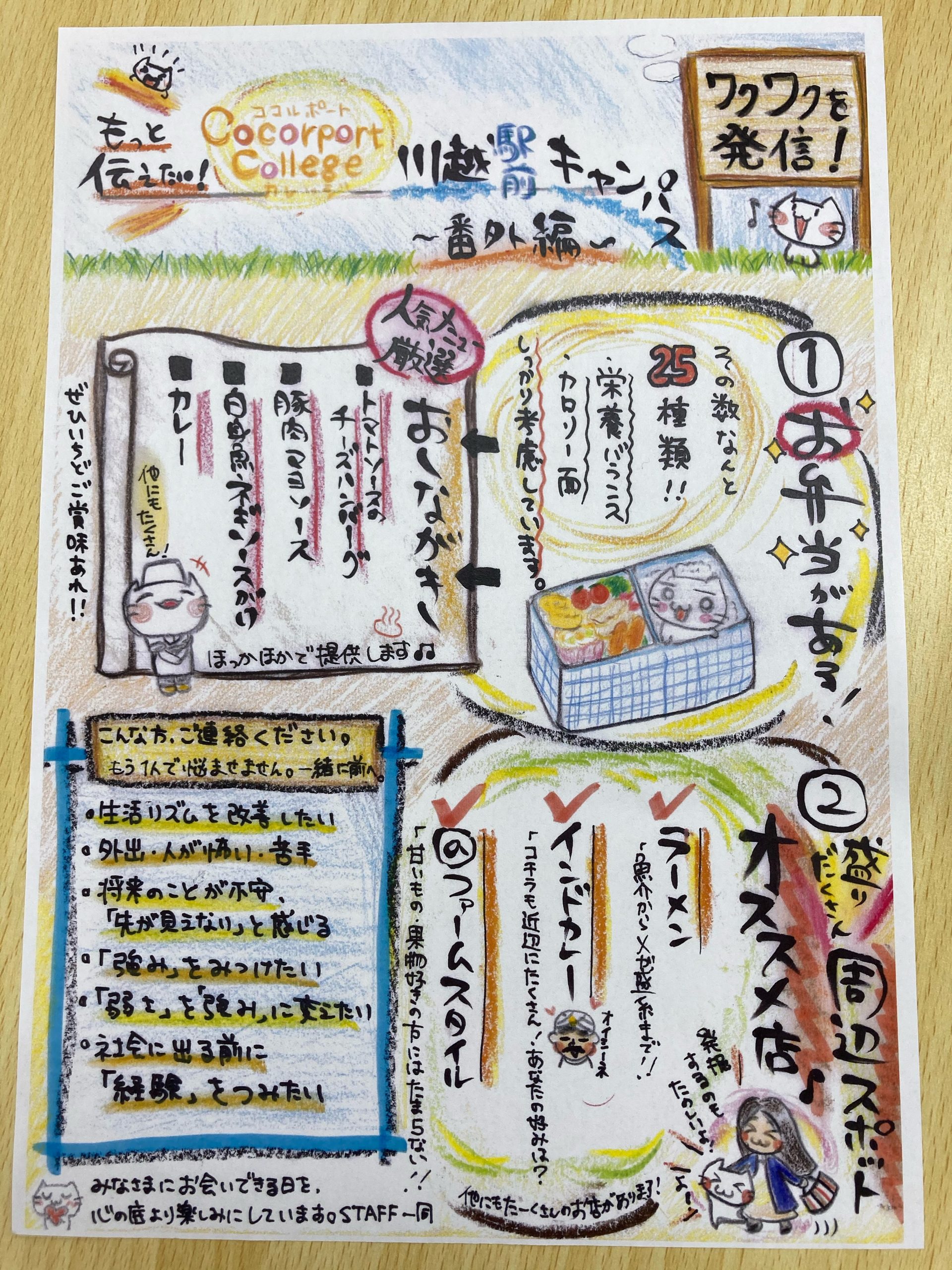 手書き版では、お弁当やキャンパス周辺スポットのご案内