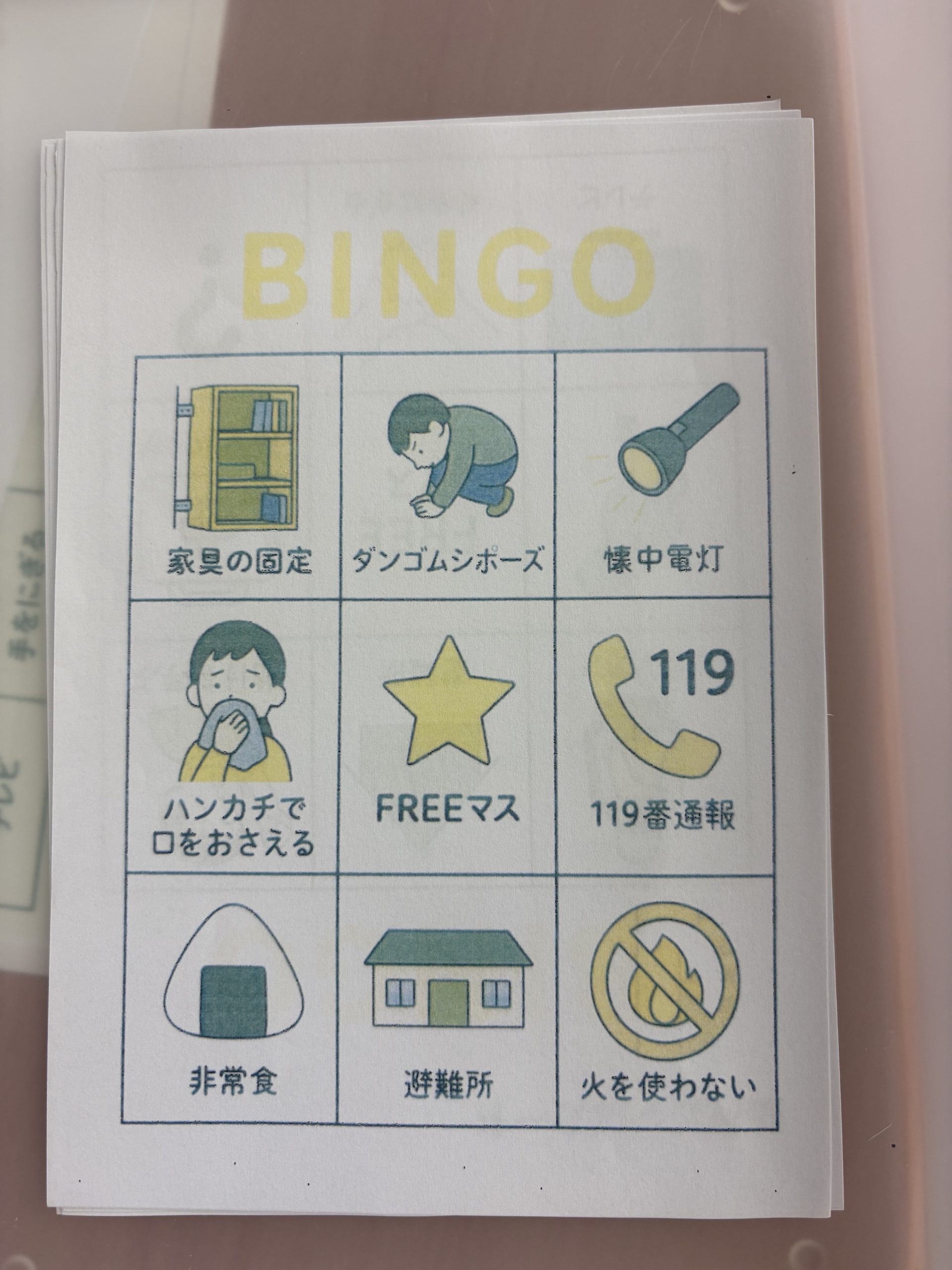 防災に関する内容で作ったビンゴゲーム行いました✨