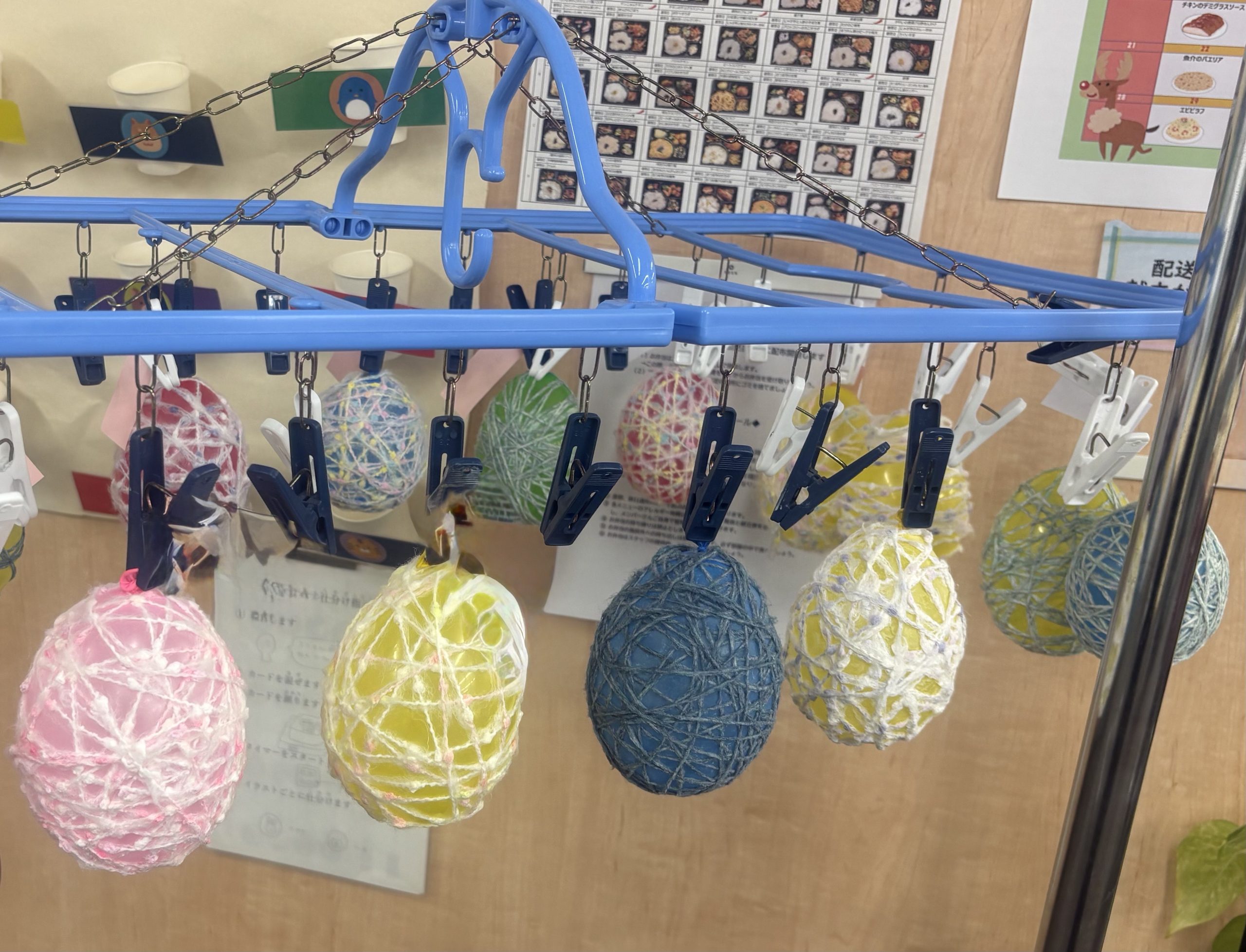 風船を割ると、毛糸だけが残り可愛い卵型になります🥚