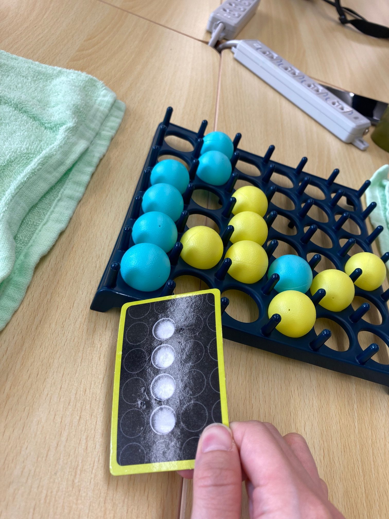 BOUNCE OFFとは ボードゲームの1つで 最初に付属のカードを引きそのお題の形の通りに作ります。