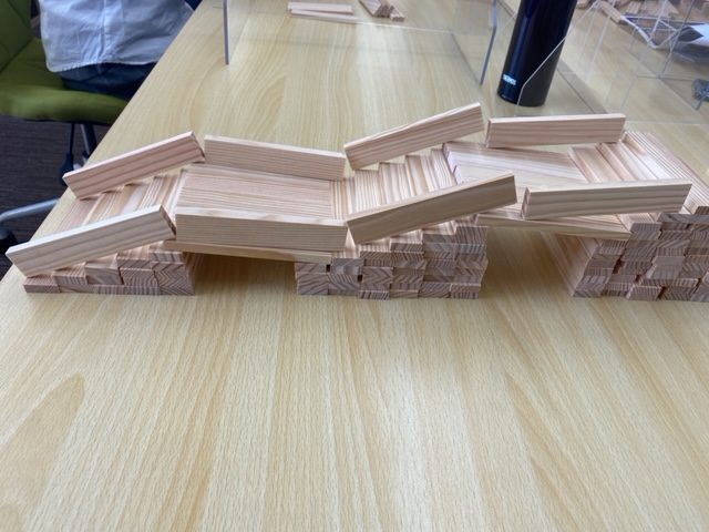 メンバーさんにはまず、10個ずつお配りして「3角形を作ってください」とお願いしました!