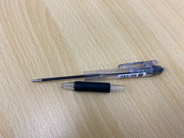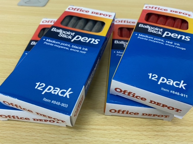発注書に書かれているボールペンや本数通りに納品していきます。