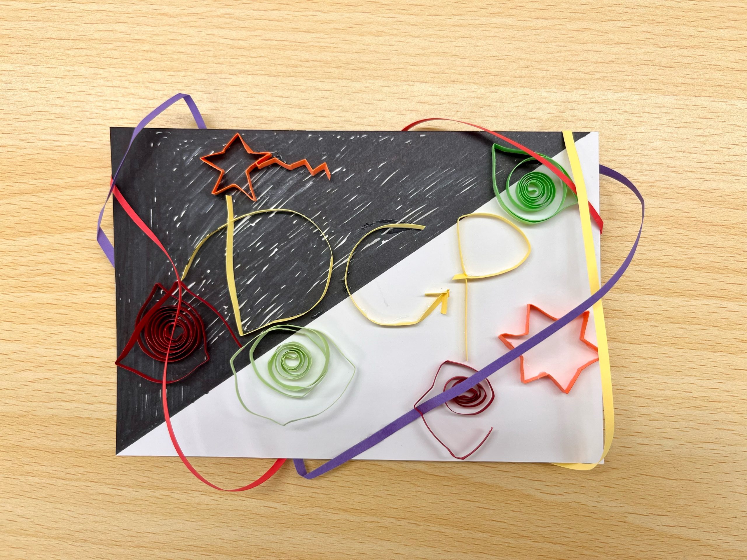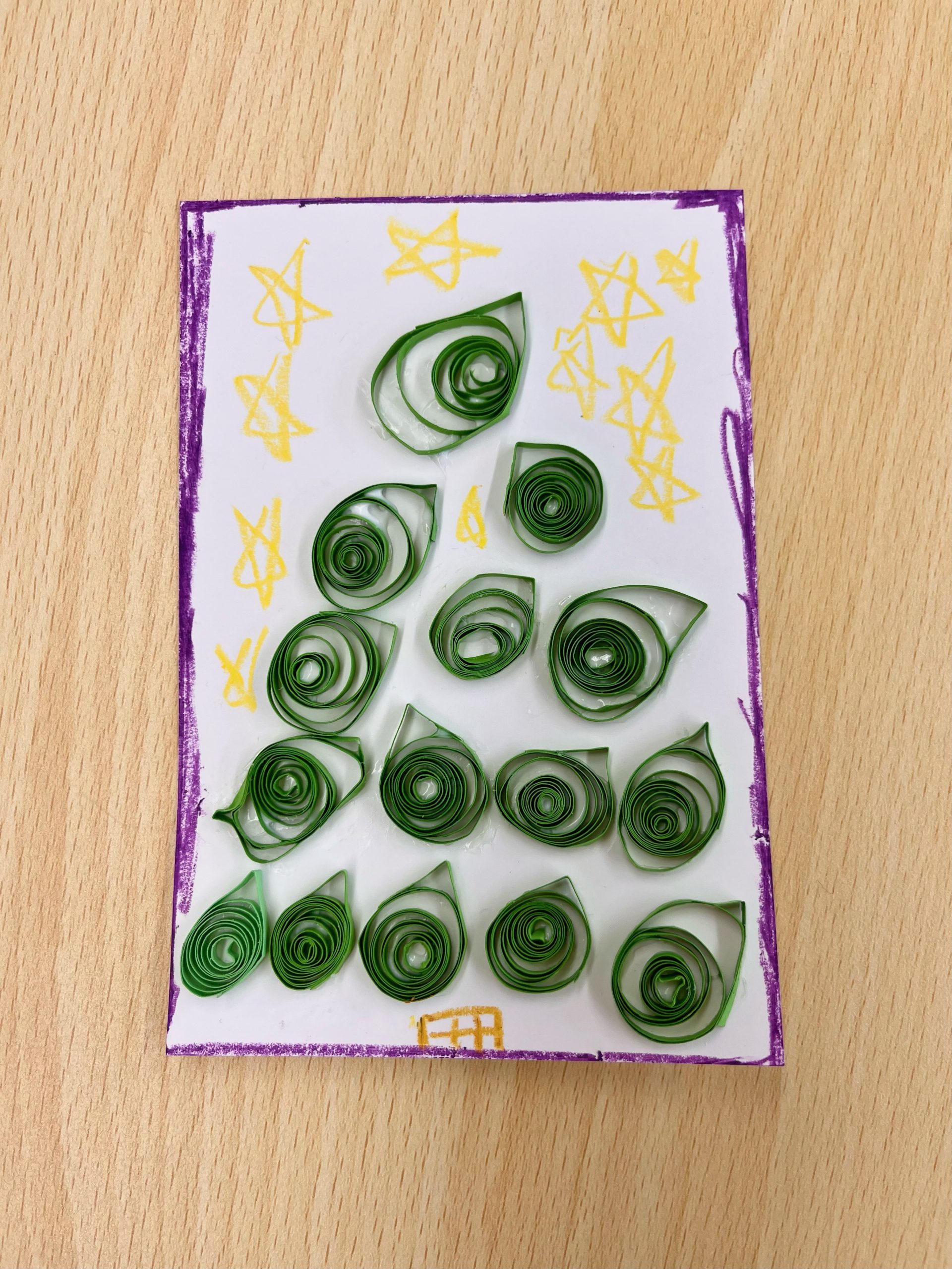 手書きで枠や星を描いており、ペーパークイリングとマッチしています🌟