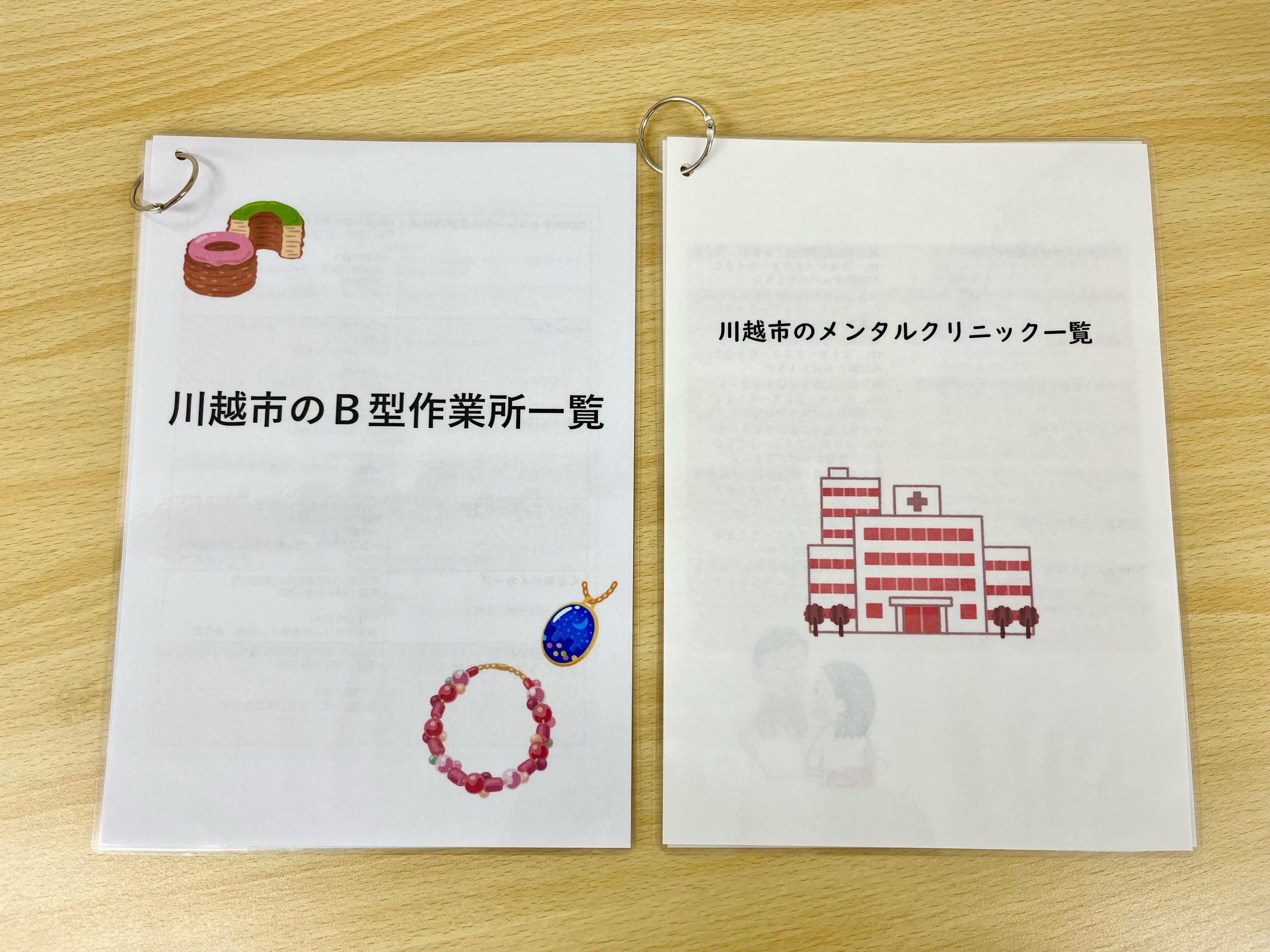 資料作成は、キャンパスにある書籍整理のためのチェックリスト、市内のメンタルクリニックや作業所一覧作成などがあります。