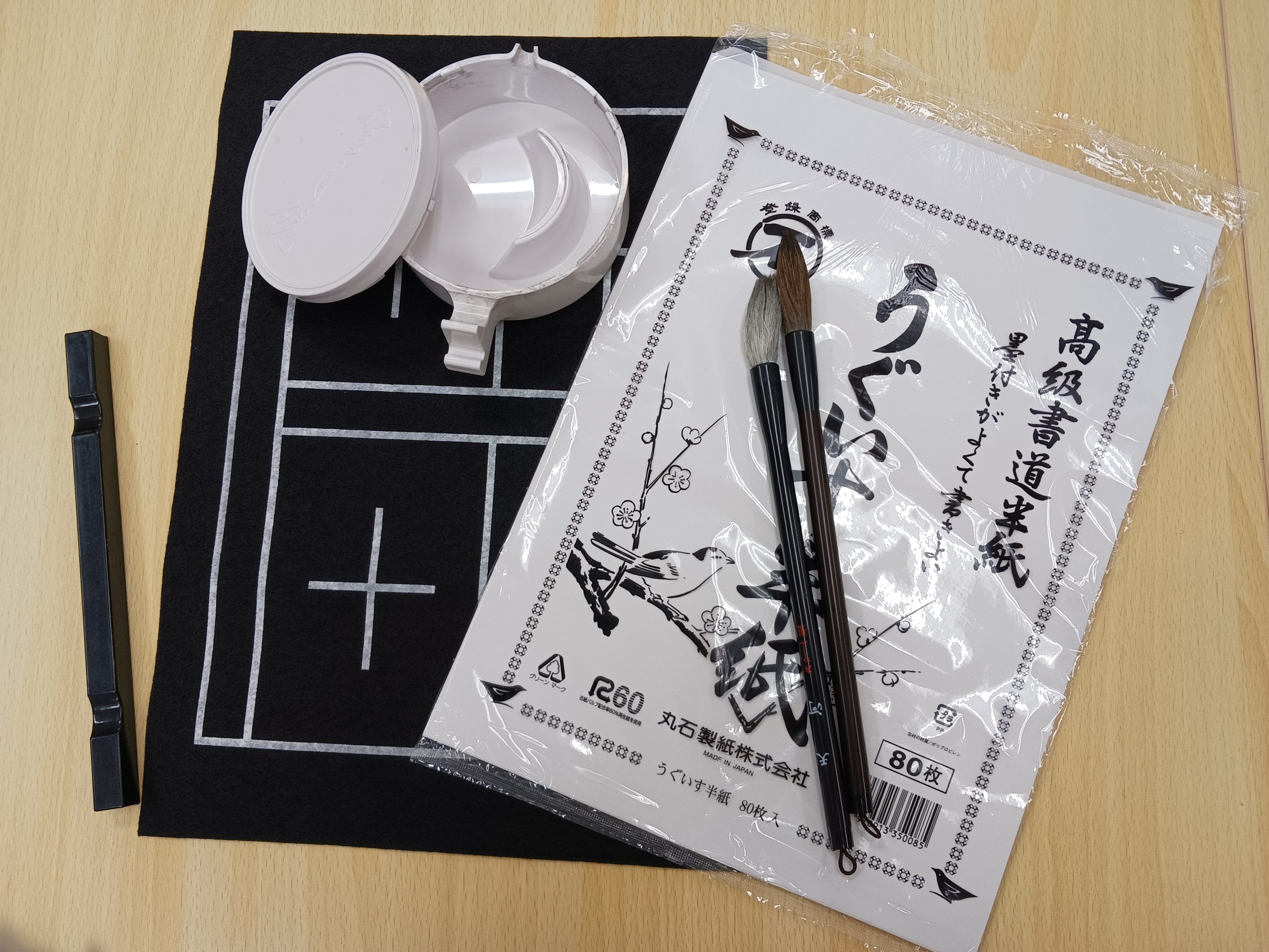 筆や硯(すずり)、文鎮など、本格的な道具をそろえました!