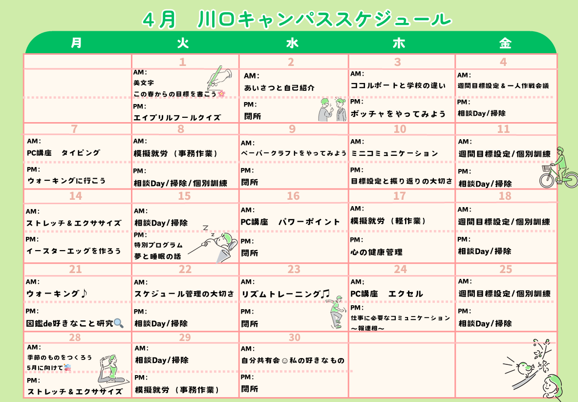 今回はそんな春穏やかな4月の川口キャンパスのプログラムをご紹介したいと思います。