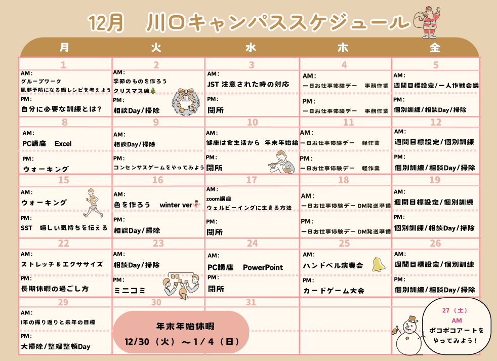 さて今回は12月のプログラムをご紹介させていただきます!
