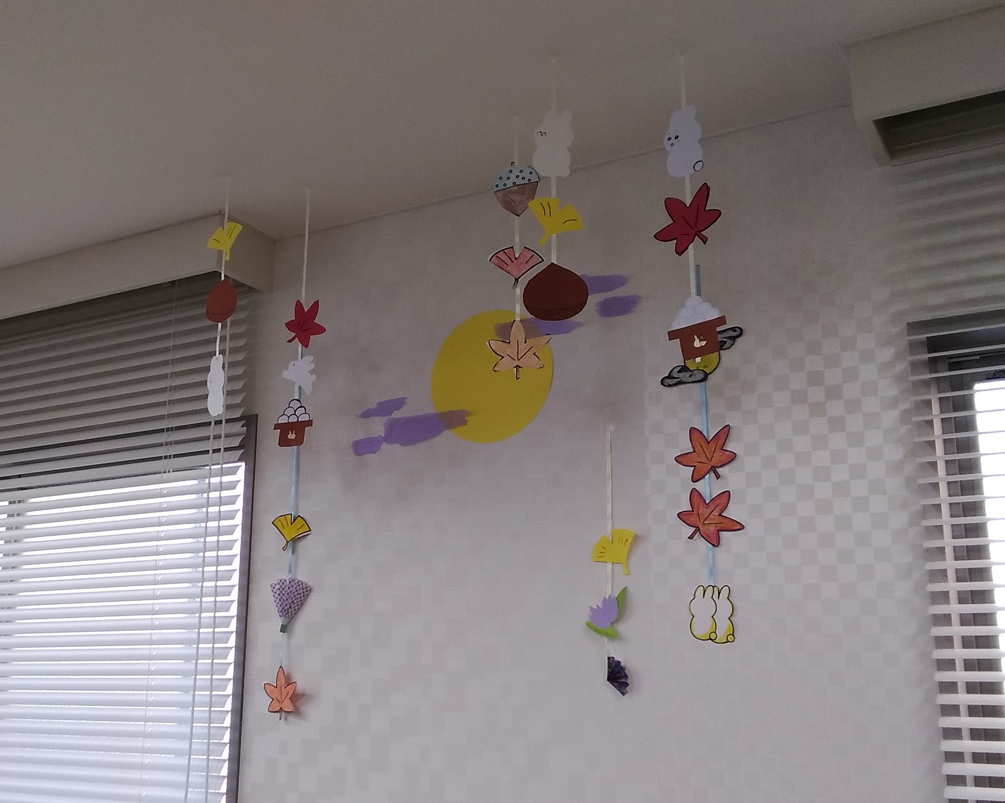 秋ということで、紅葉やイチョウ、お月見うさぎ、栗などの絵柄の中から選んでいただき、とてもきれいな作品ができました。