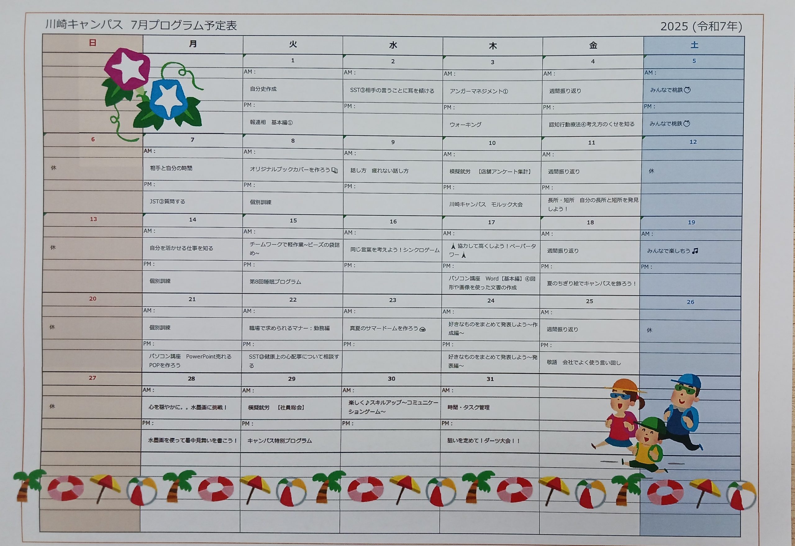 【川崎キャンパス】⭐7月のプログラムのご案内⭐【自立訓練】
