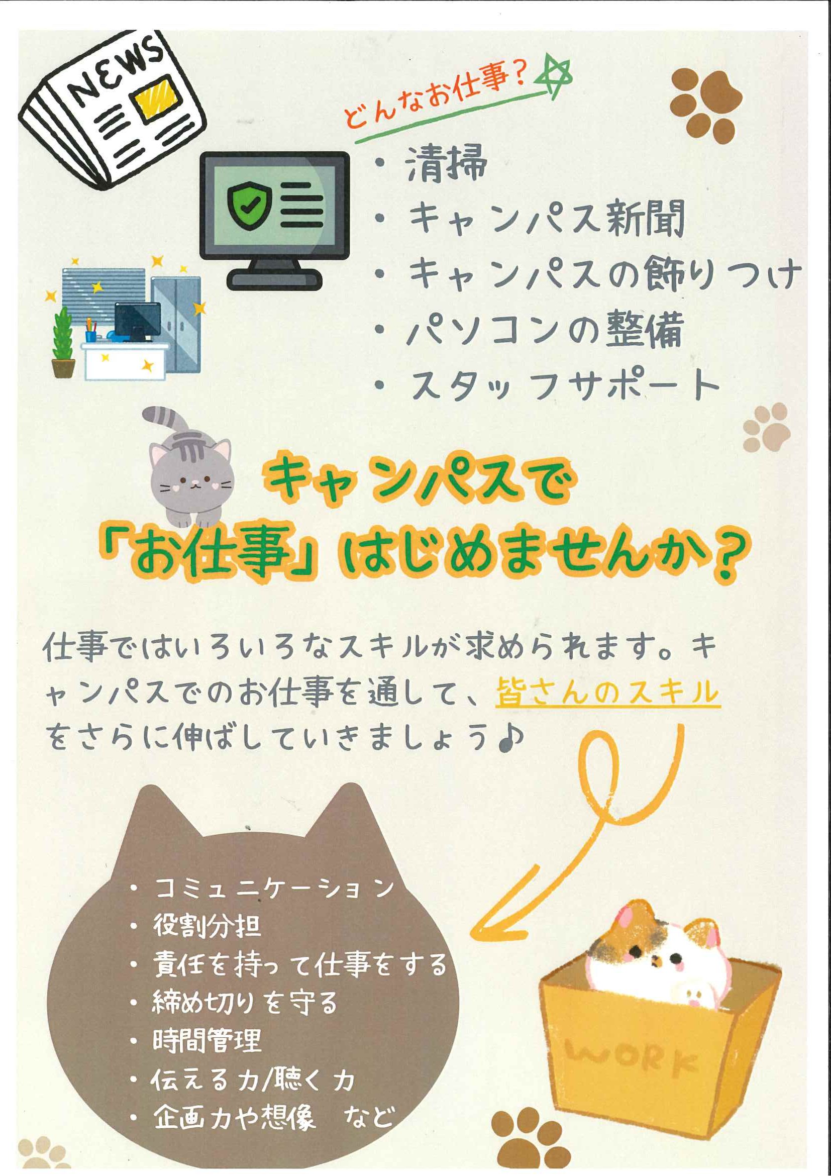 「キャンパスでお仕事はじめませんか?」と銘打ち、