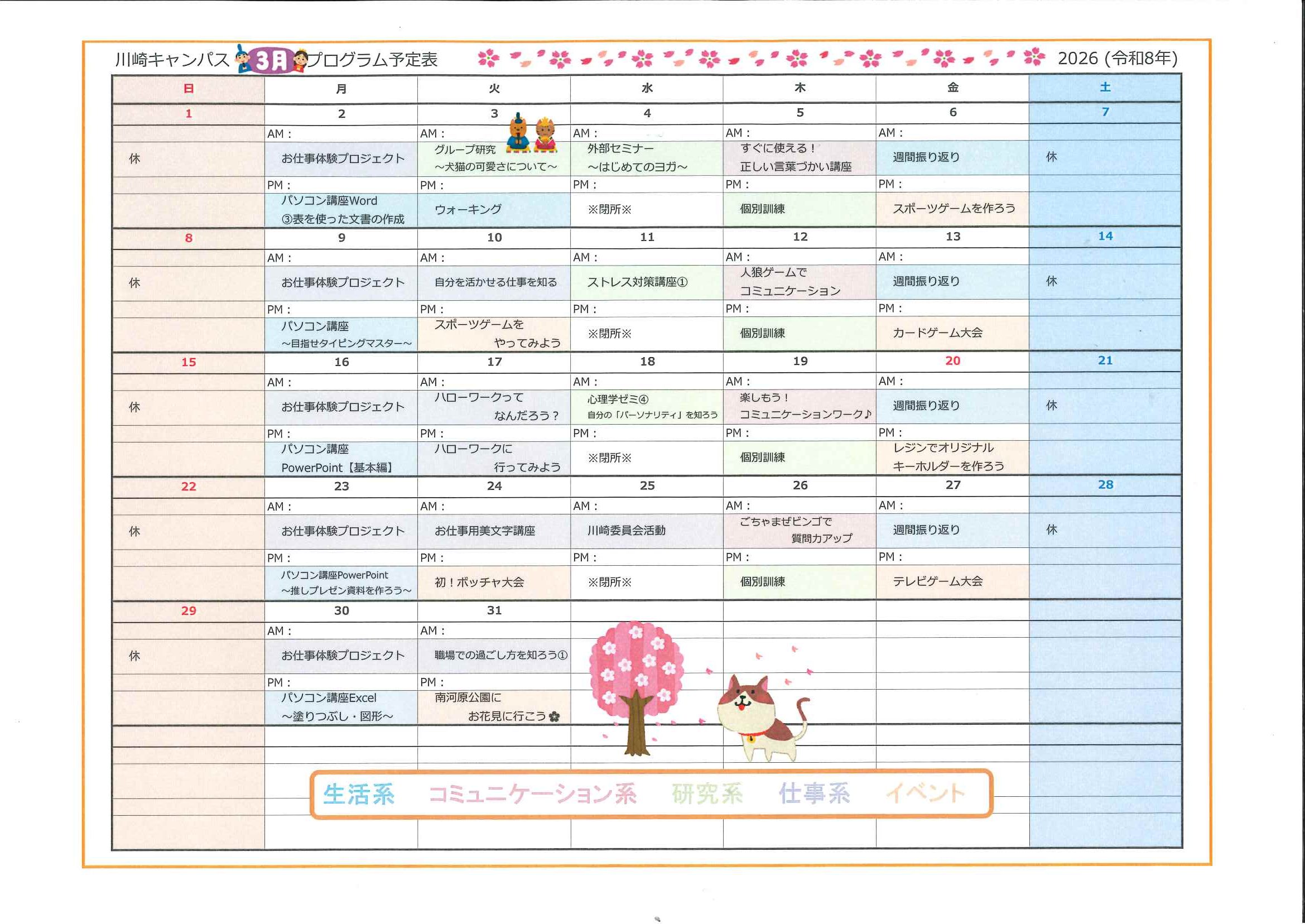【川崎キャンパス】猫の日🐱キャットしっぽキーホルダー&3月のプログラム紹介【自立訓練】