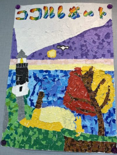表紙に使われたこの印象的なちぎり絵ですが、実はデザイン案~作成まですべて利用者の皆さんが行っています!