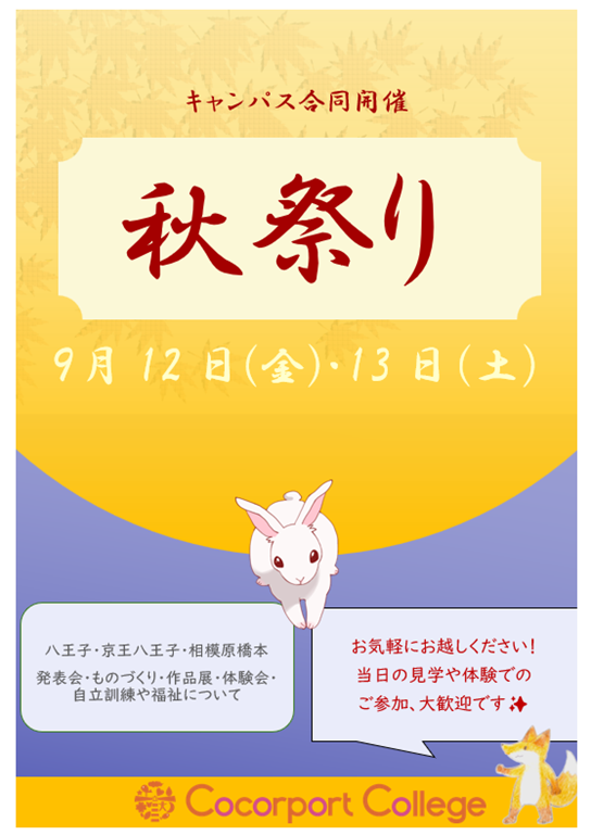【京王八王子駅前キャンパス】秋祭りのお知らせ🎈【自立訓練】
