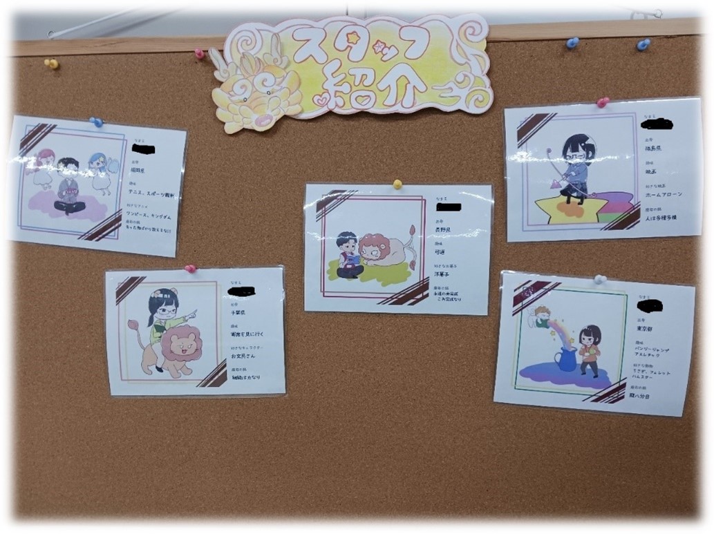 こちらは利用者さんが作成してくださったスタッフ紹介のイラストです。