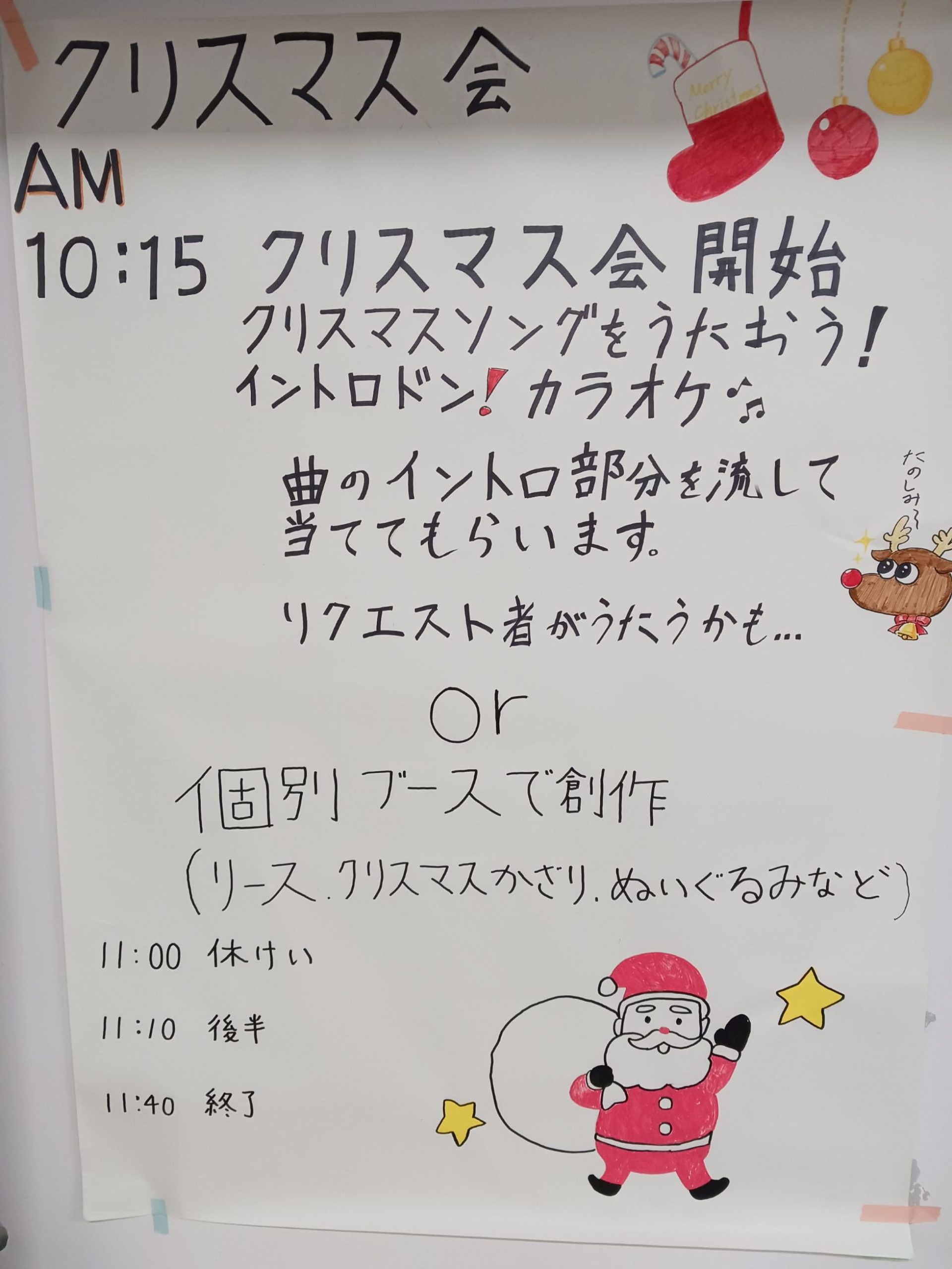 さて、今回は12/25(木)に行われましたクリスマスイベントの様子についてご紹介したいと思います。