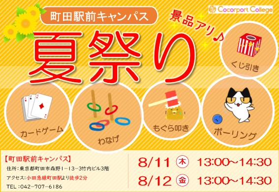 さて今回のブログでは8/11,12に開催しました「町田駅前キャンパス 夏祭り」についてご紹介させていただきたいと思います。