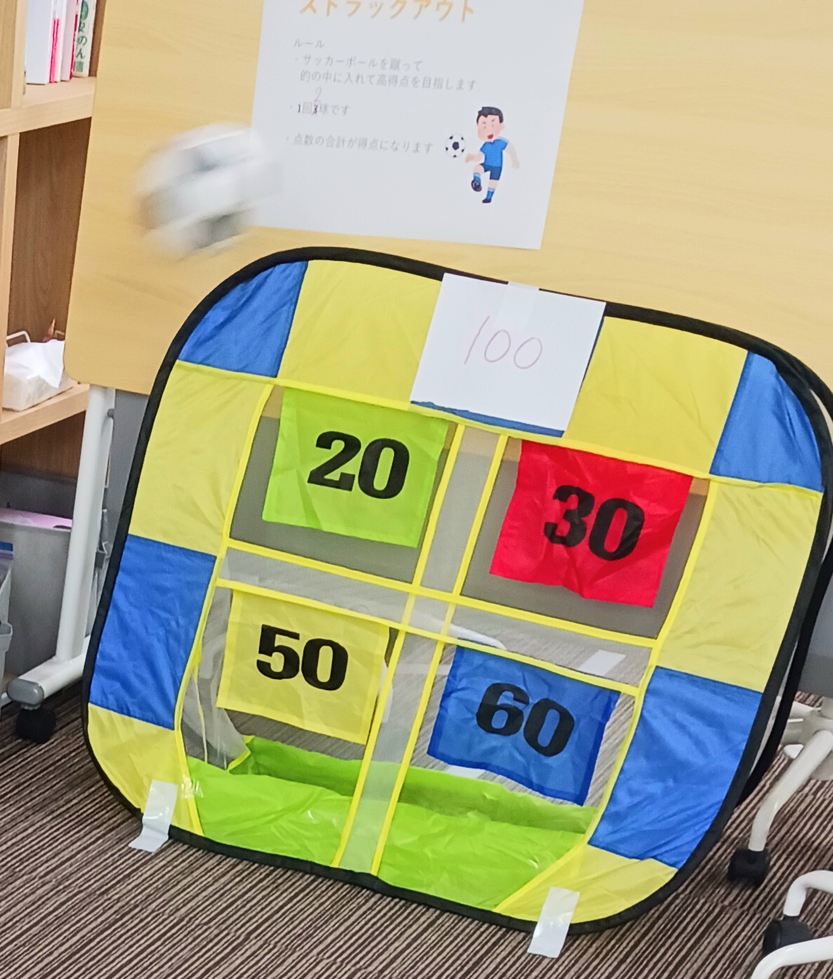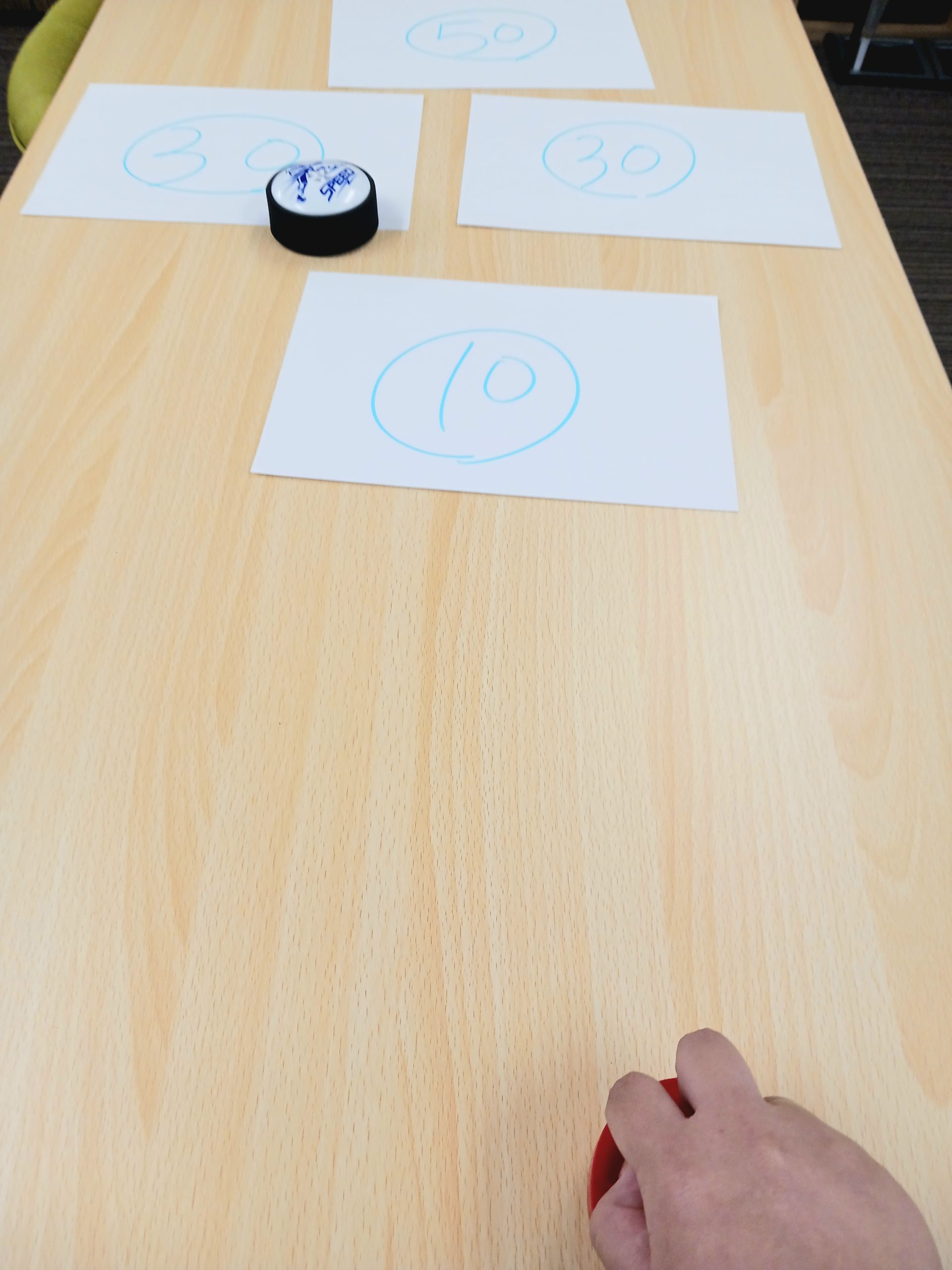 得点が書いてある紙の少しの段差でも弾かれるため、力加減が難しかったです💦