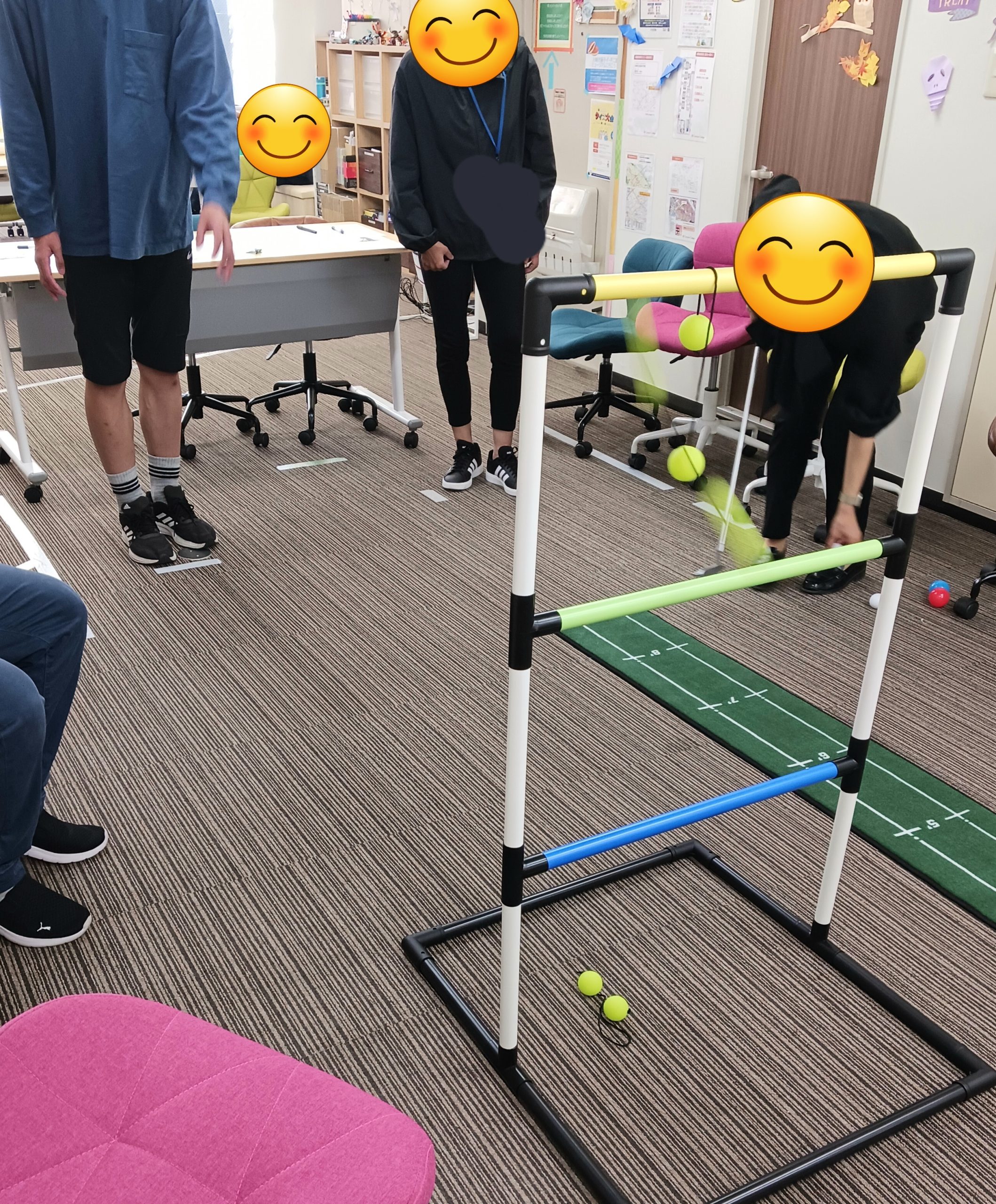 3段あるはしごで、どうすれば高い得点のはしごに引っ掛かるのか利用者さん同士での