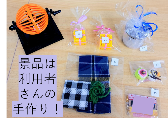 今回の秋祭りでの景品は全て利用者さんの手作りです🧶