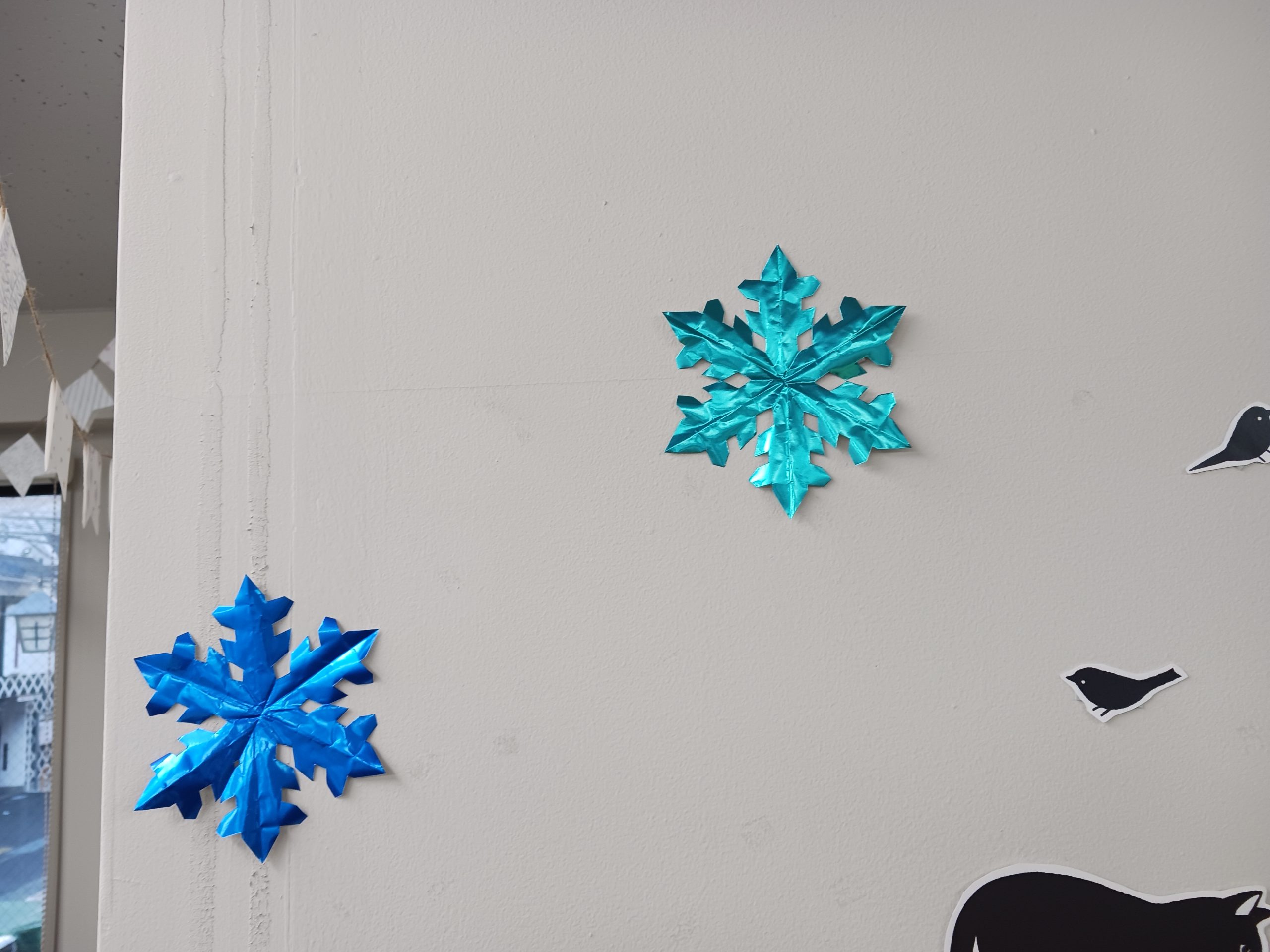 メンバーさんお手製の冬のガーランドをはじめ、雪の結晶❄️など冬らしい飾りつけになりまし