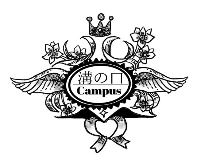 溝の口キャンパスのある高津区の花が水仙だったので水仙を散らし、誰もが持つ羽ばたける羽根、全員が自分の人生の中で王様であると言う意味で王冠を入れ、大事にしていきたいココロをハートマークとして使いました。