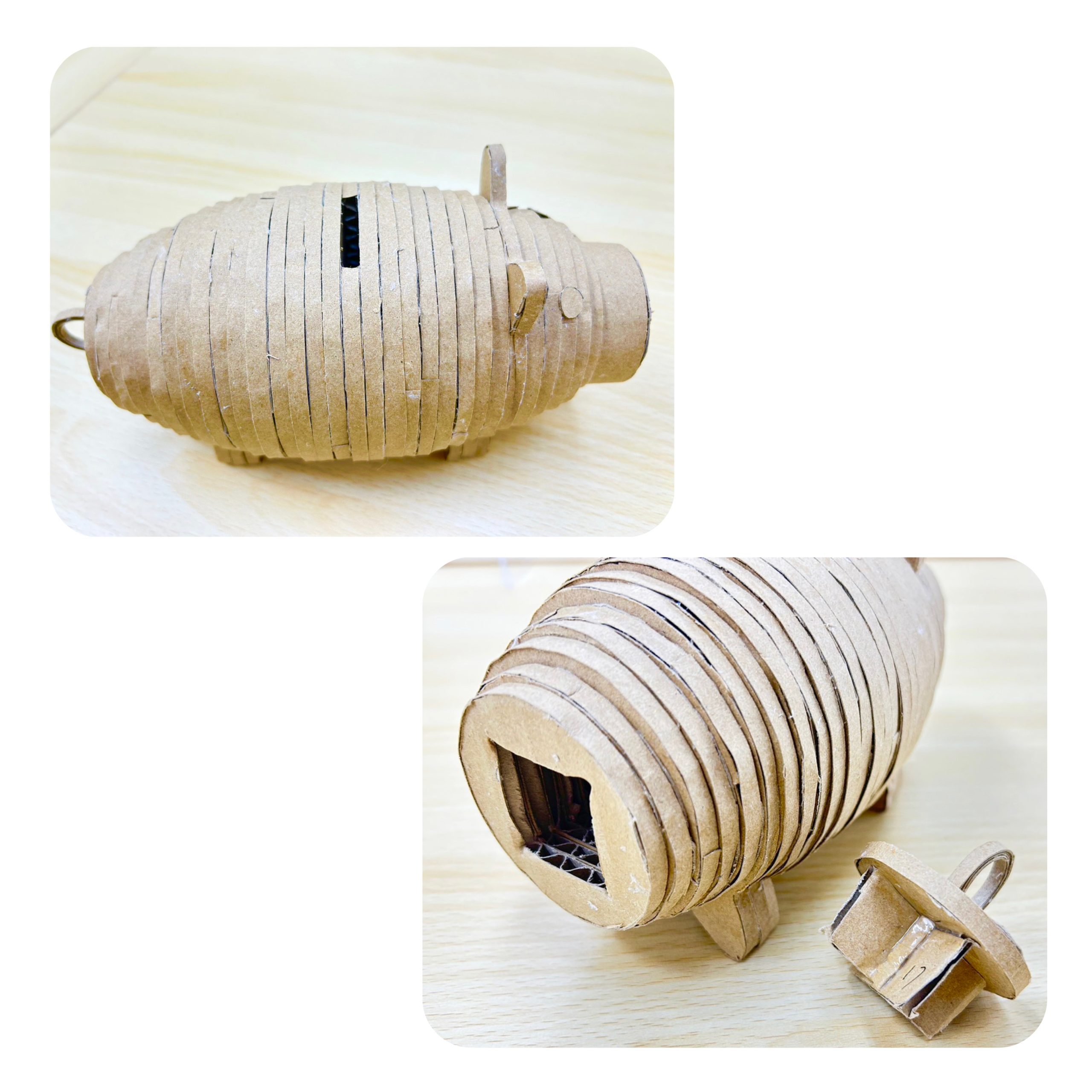 利用者さんが個別訓練で作成された段ボールアートを紹介します🐷