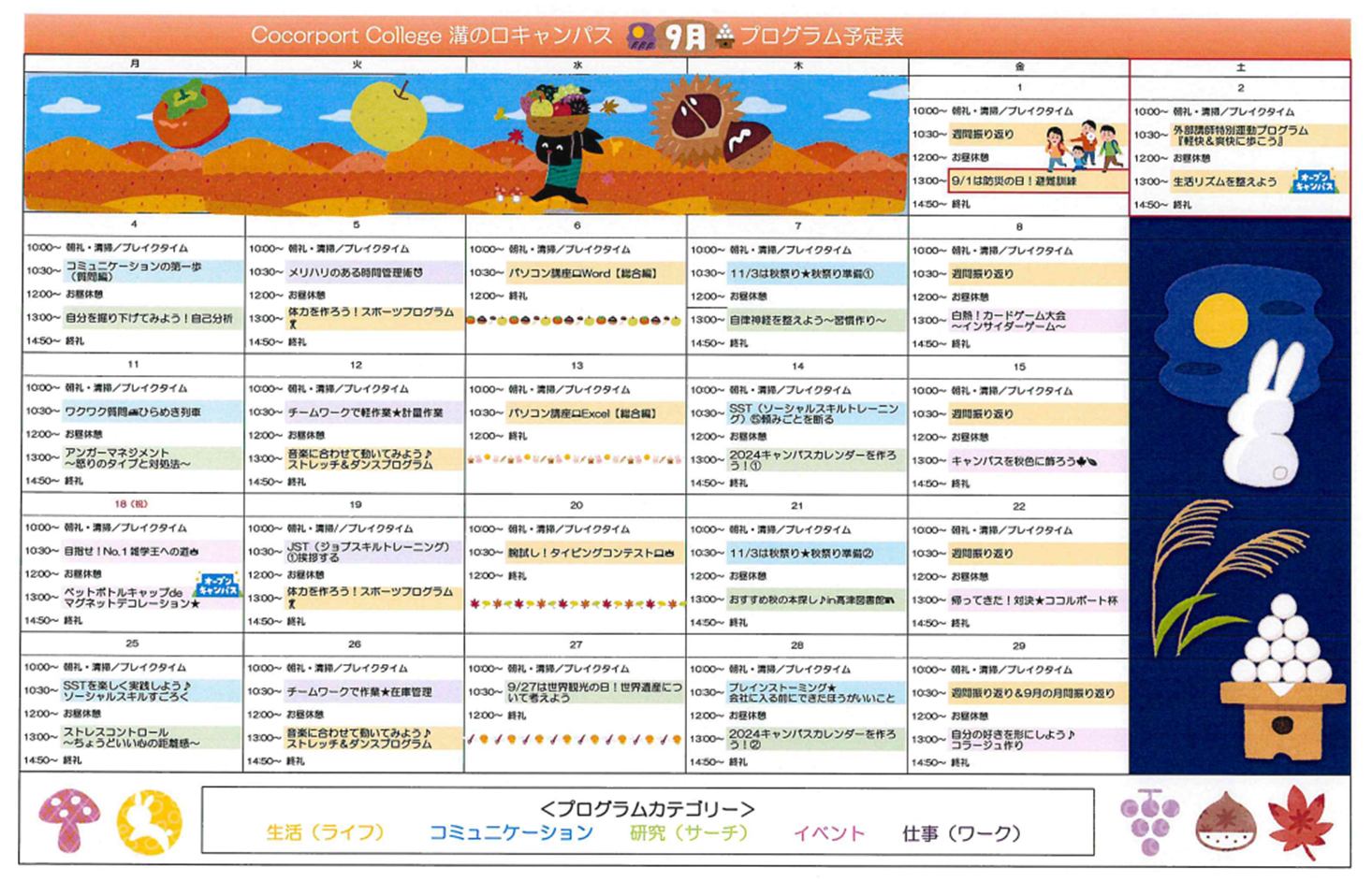 また、9月はココルポートカレッジ溝の口キャンパスで、