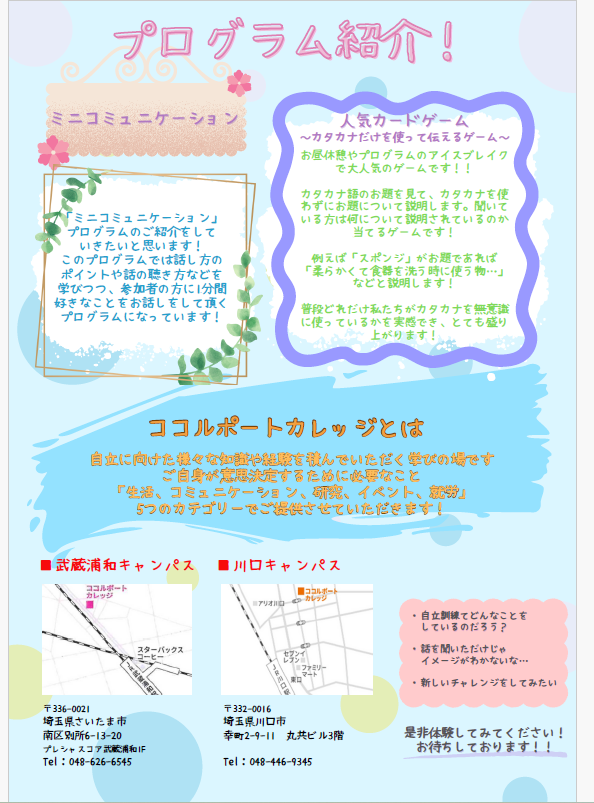 武蔵浦和キャンパスと合わせて、川口キャンパスでも実施いたしますので、まずは是非お気軽にお問合せください!🙌
