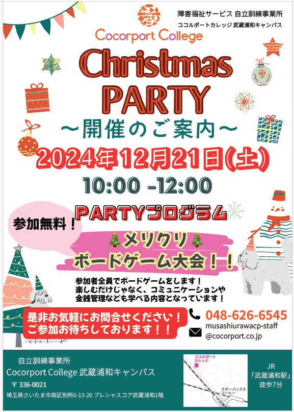 【武蔵浦和キャンパス】🎅冬休み特別企画、クリスマスパーティーのご案内🎄【自立訓練】