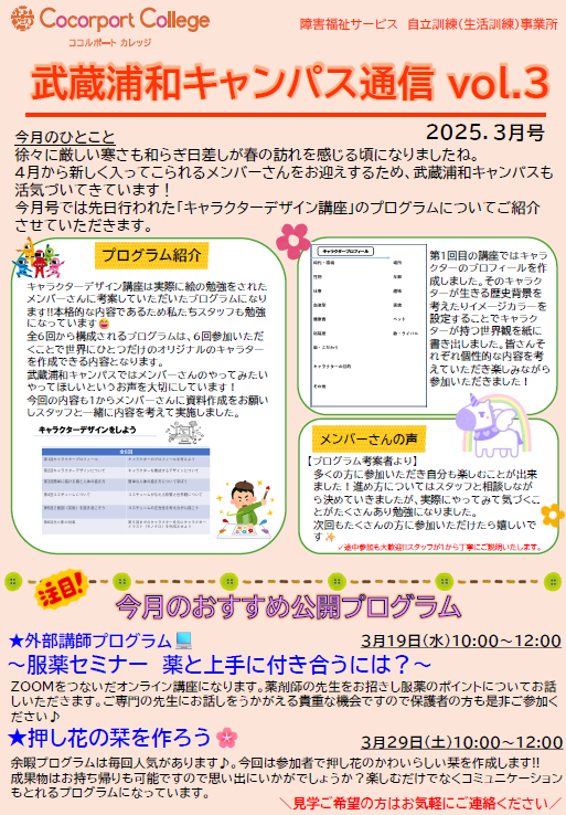 武蔵浦和キャンパスでは毎月キャンパス通信を発行しております。