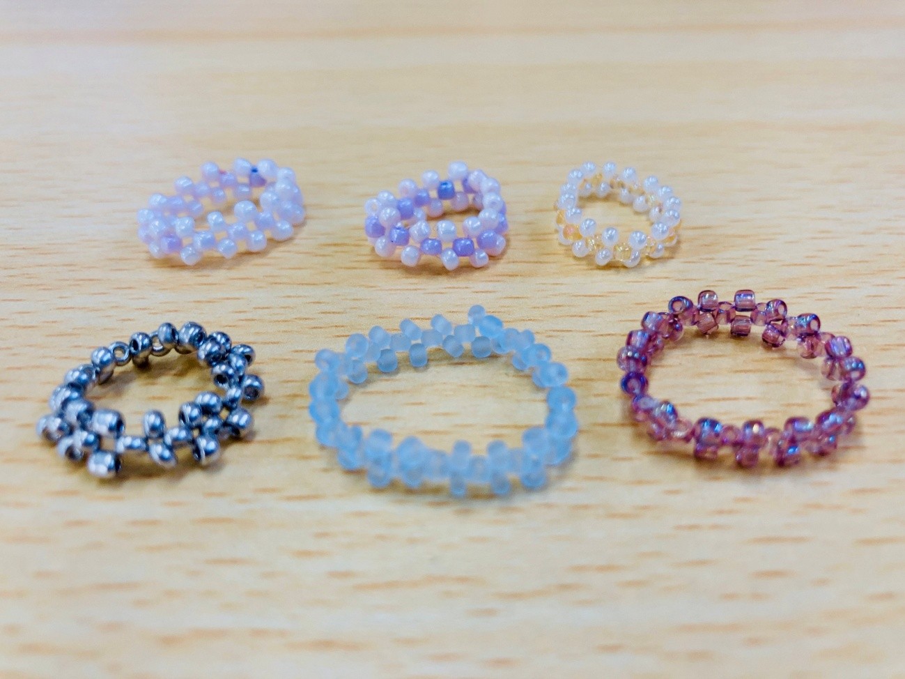 メンバーさんそれぞれ色使いが綺麗なビーズリングが完成しました💍✨
