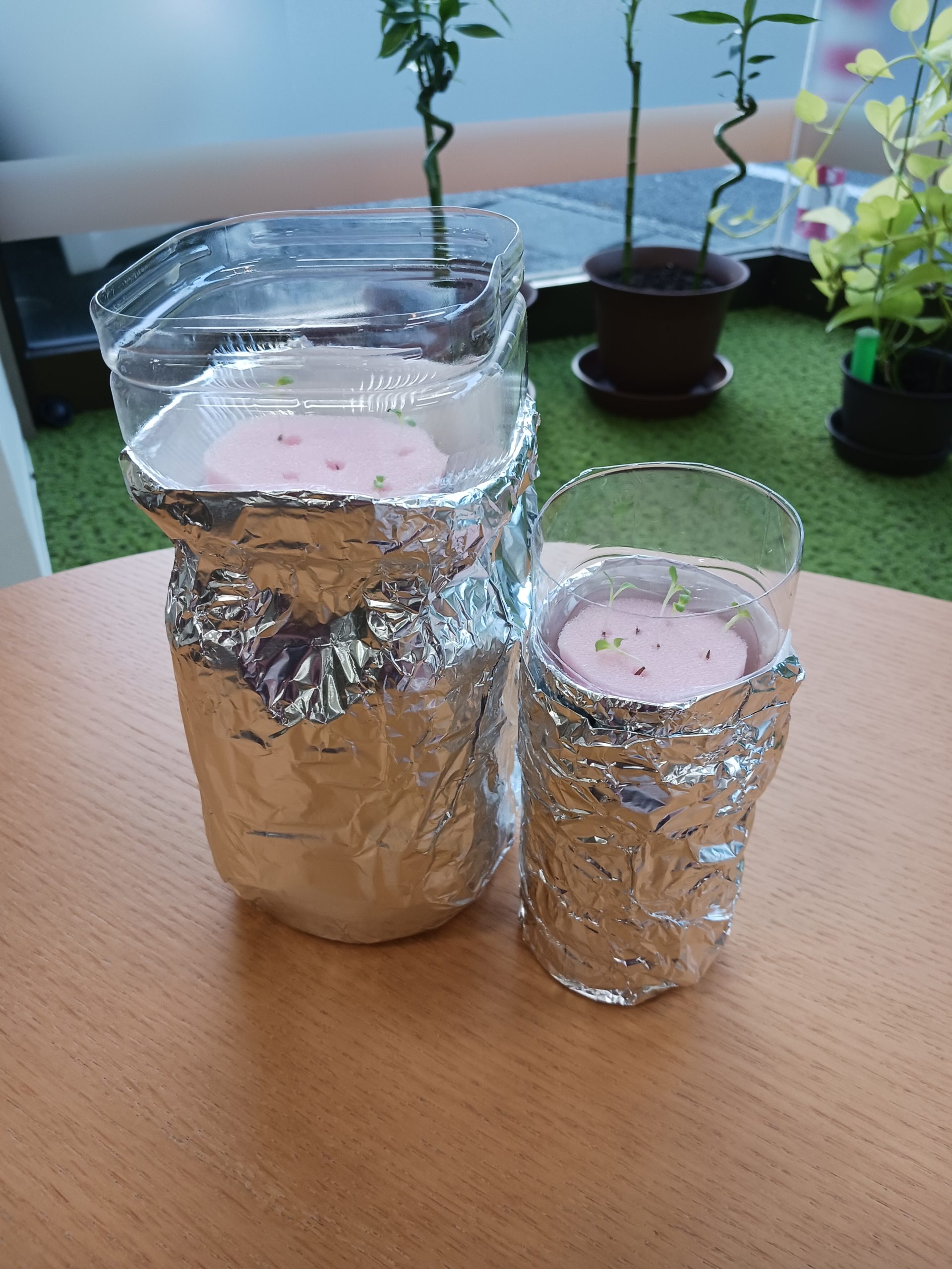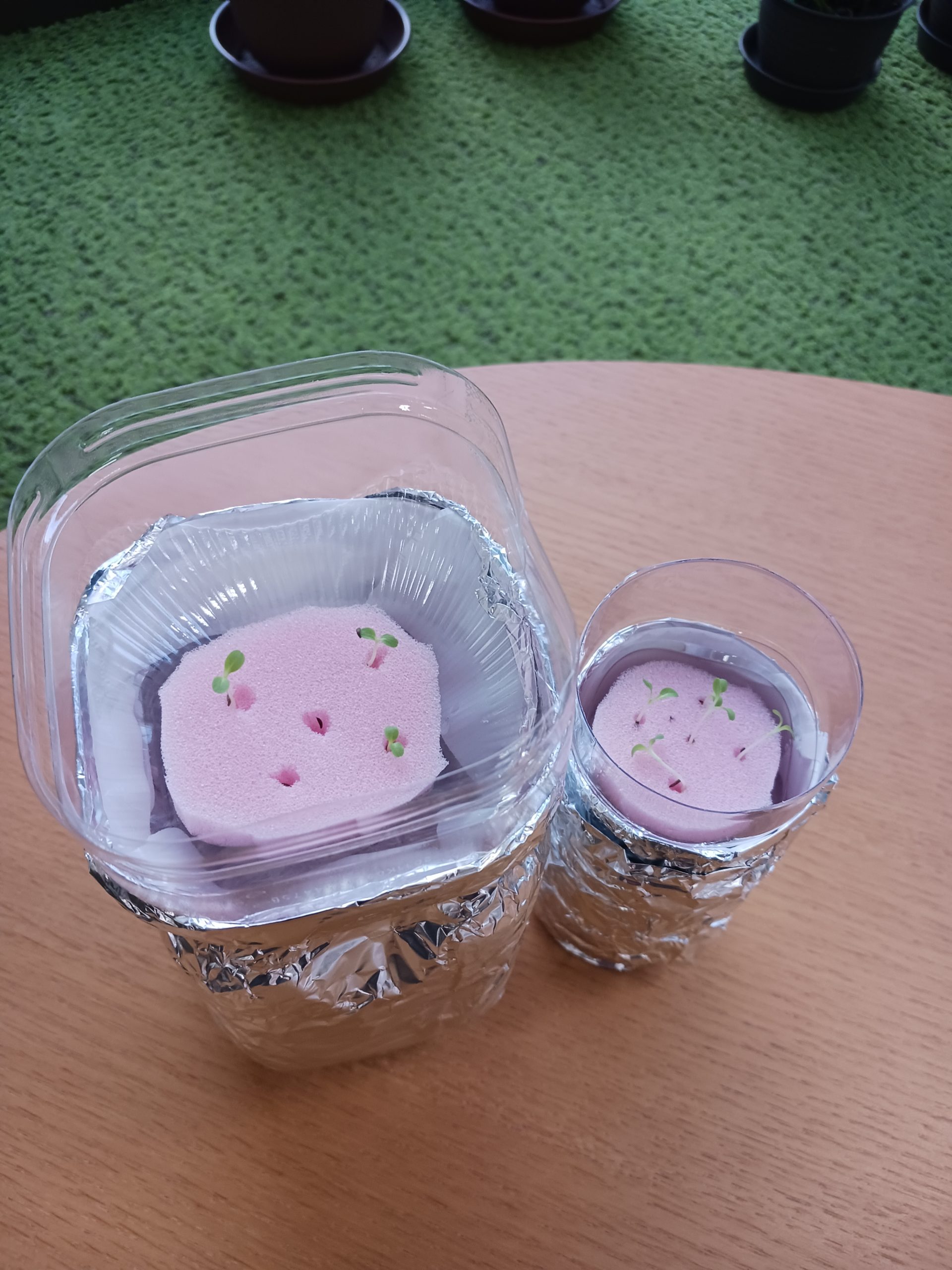 種まき後3日ほどで発芽しました!!土を使わずに栽培ができますので、衛生的ですね😉