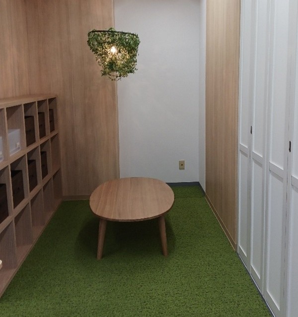こちらはリラックススペースです。靴を脱いでゆったりとくつろぐことができます。