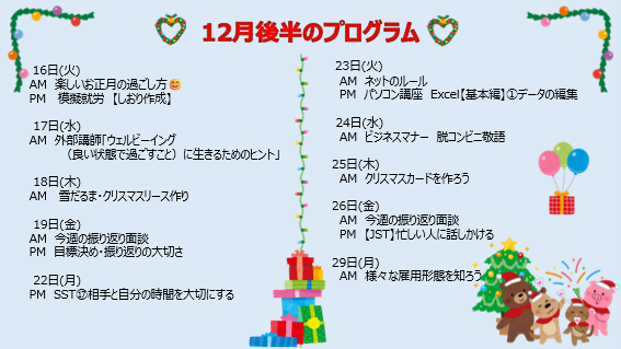 🌟12月のおすすめプログラム🌟