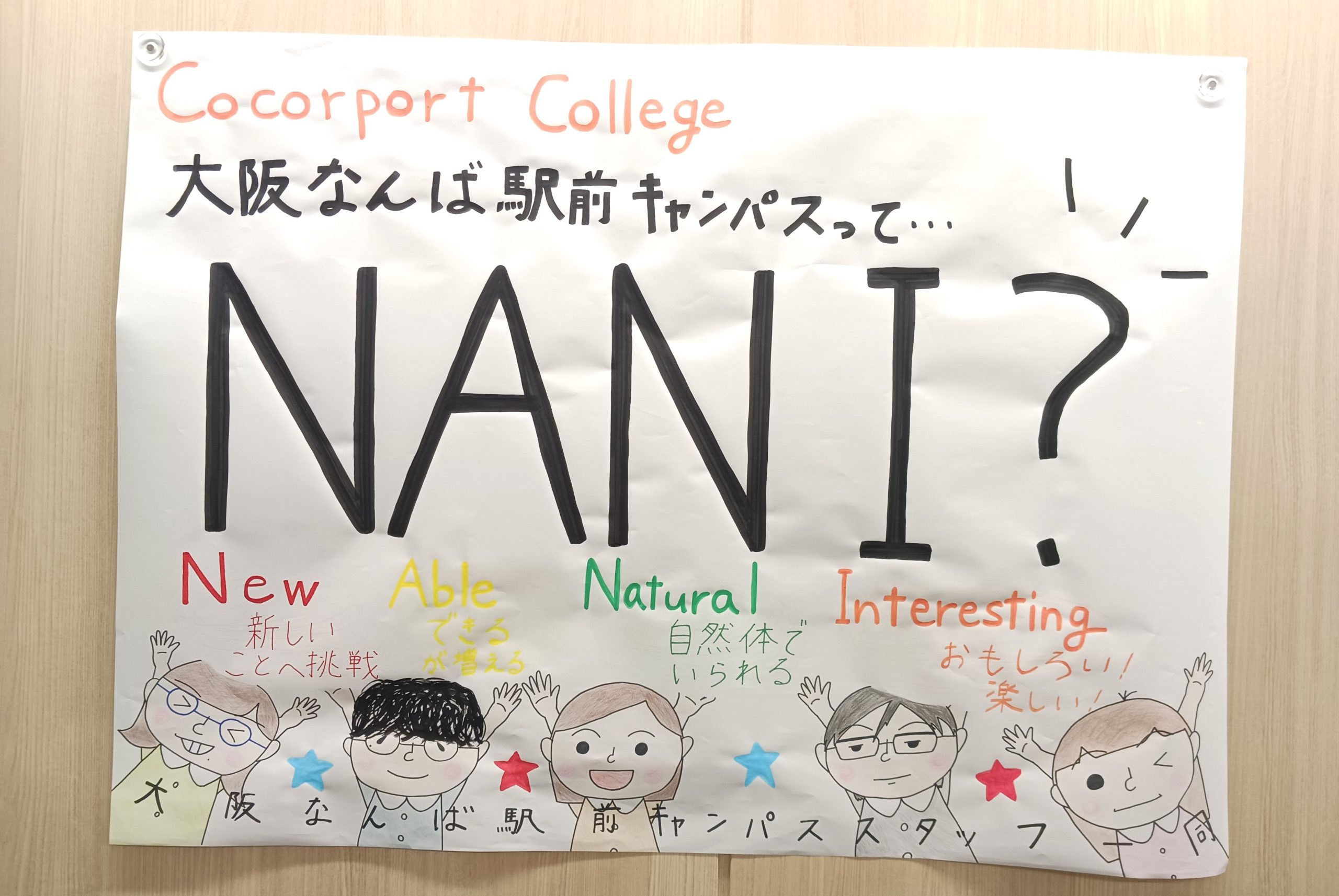なんば駅前キャンパスのキャッチコピーは、『NANI?』です🐯