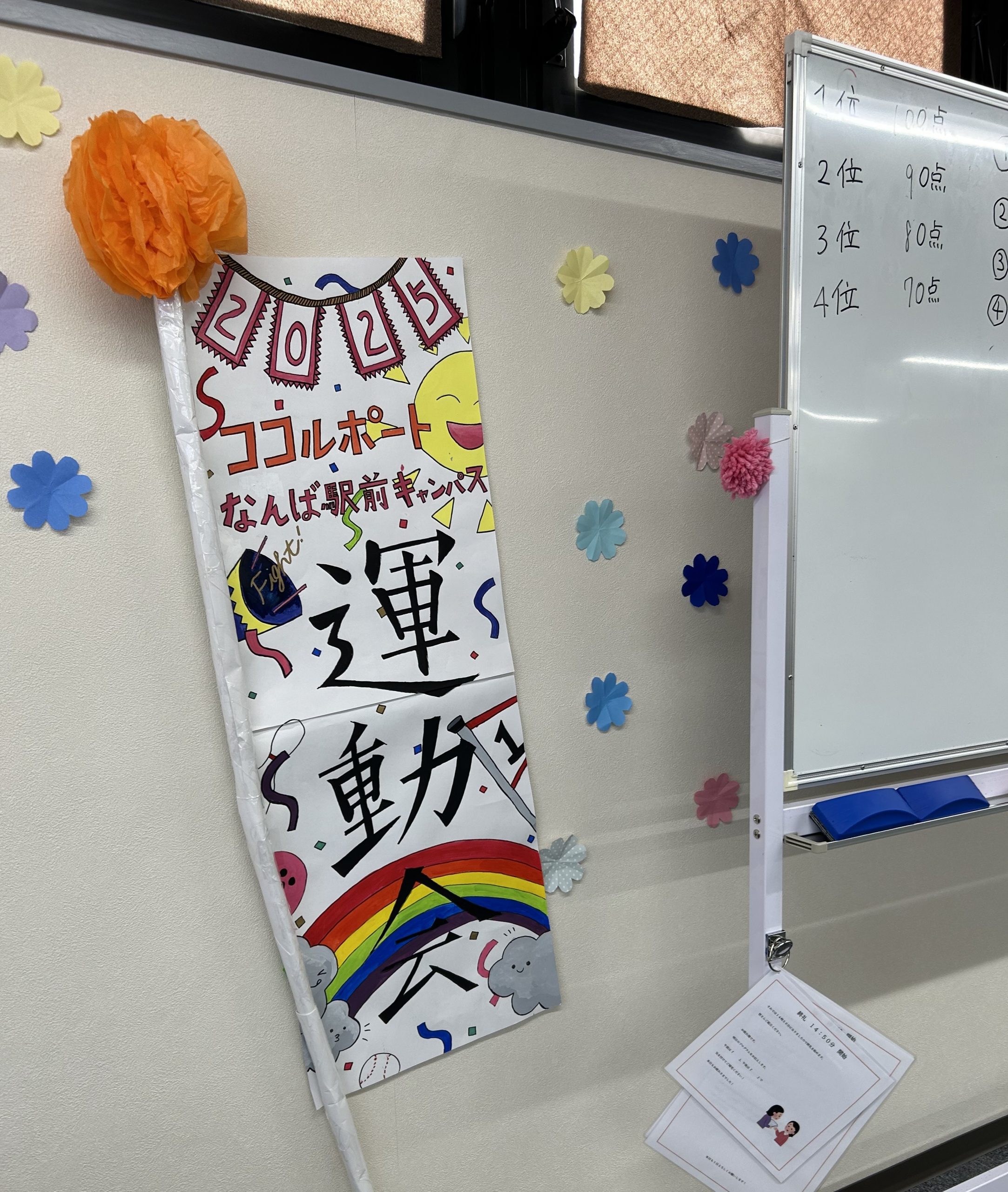 また、運動会の準備期間には、ポスター制作と飾り付けを担当しました。