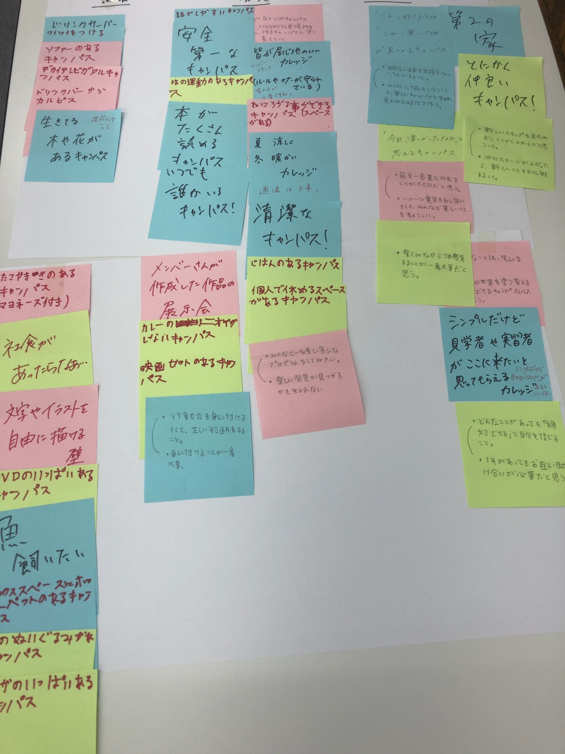 実習されている方から付箋だけでなく口頭でもたくさんお話を賜り、共にキャンパスを創り上げていく楽しみを共有いたしました。