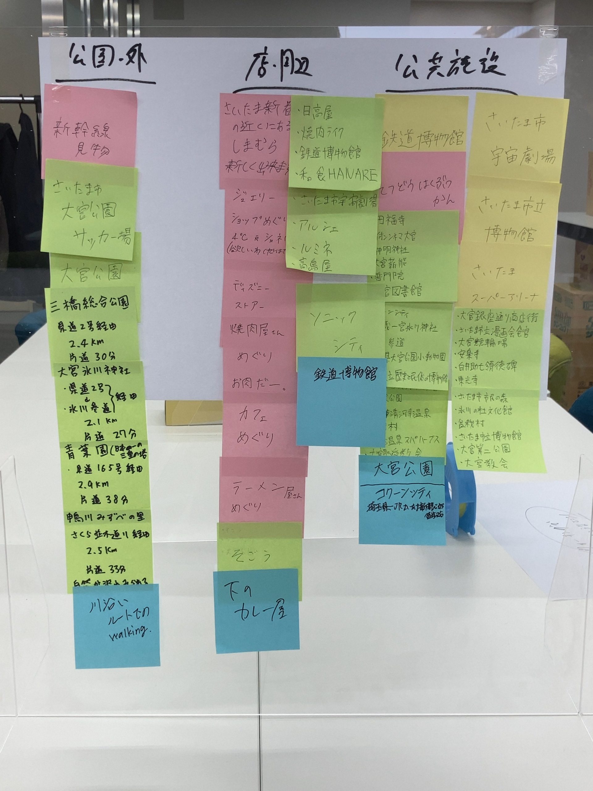 参加された方がここは歩いてみたい!というスポットを付箋で出し合いました。