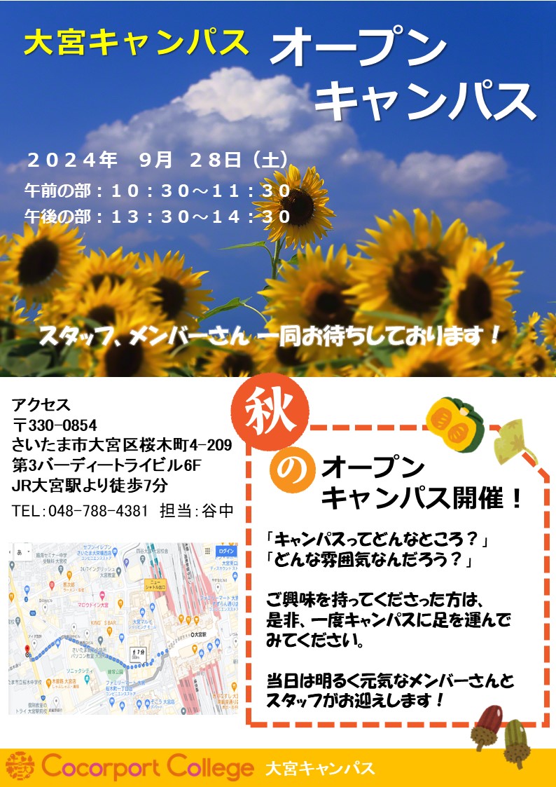 さて、今日は、大宮キャンパスのオープンキャンパスについてお知らせ致します!