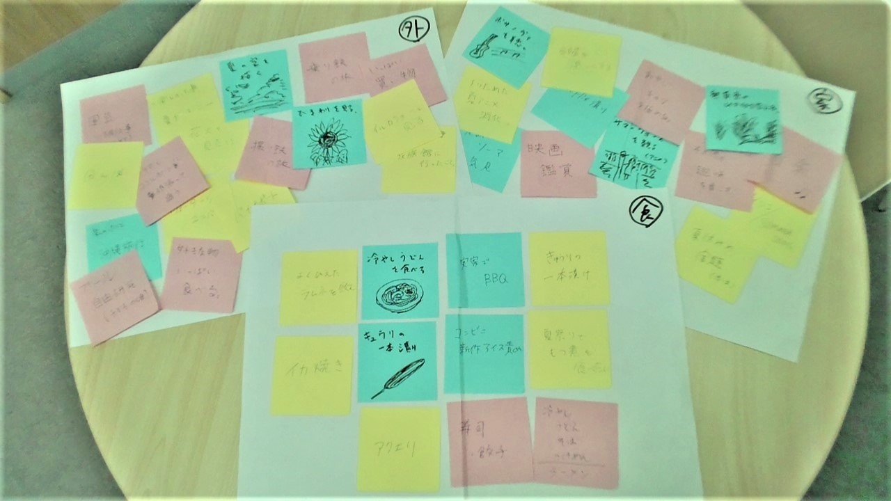 他のメンバーさんが書き出した付箋を見て、「あ~こういうのもあるのか~」 「それ私もやってみたい!」など、