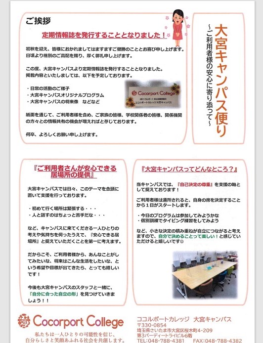 【大宮キャンパス】 大宮キャンパス便り、発行スタート! 【自立訓練】