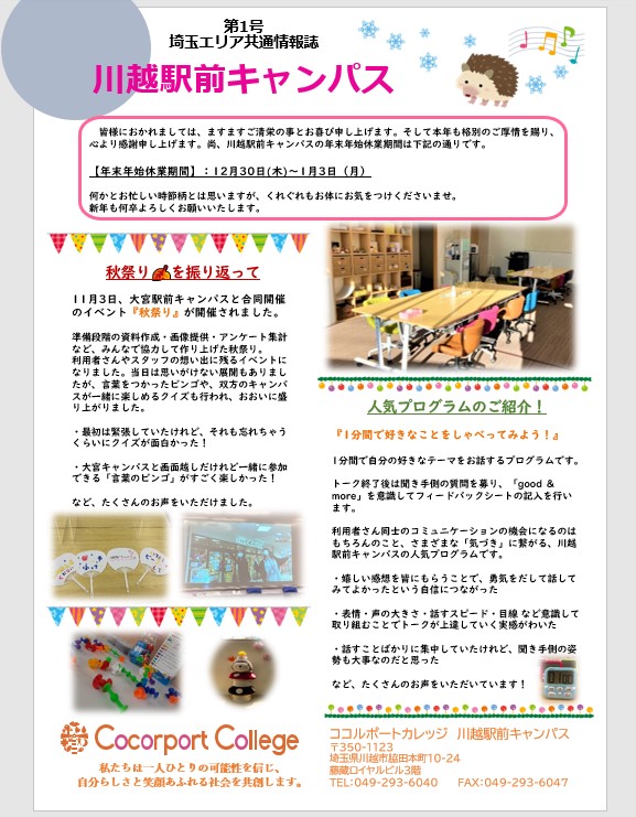 【大宮キャンパス】埼玉エリア情報誌完成&1年のご挨拶【自立訓練】