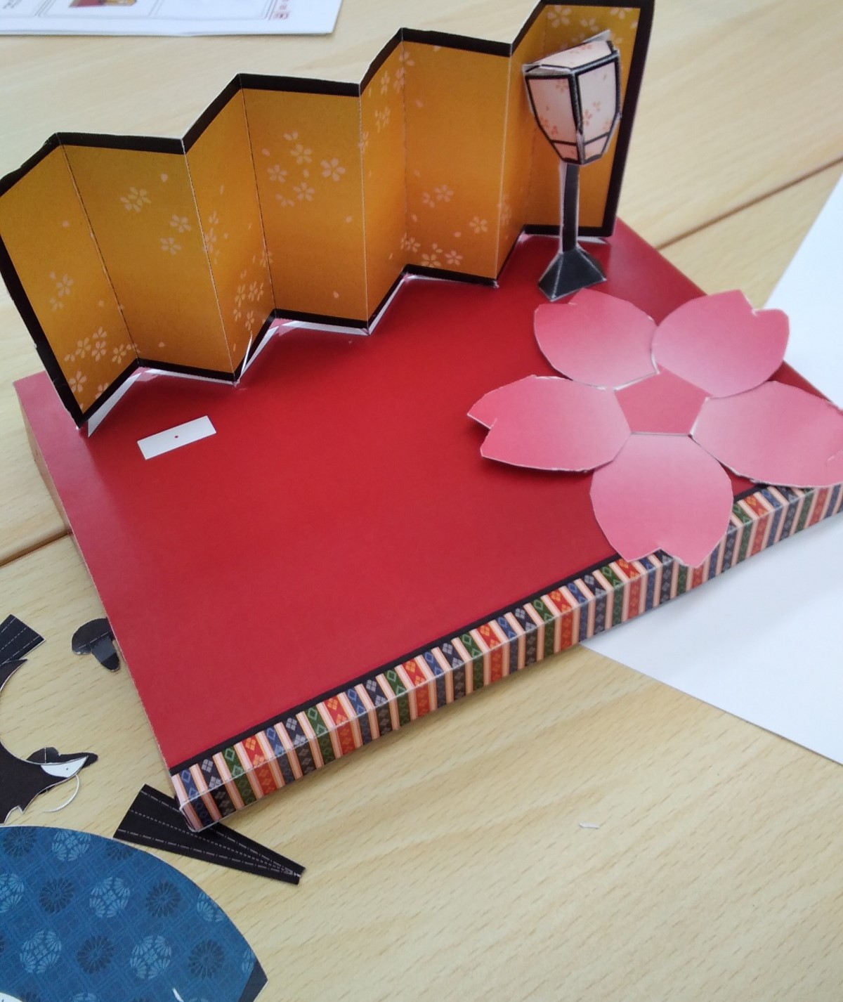 左のミニ雛人形は完成途中ですが、限られた時間内でみなさんで協力しながらひとつのことに取り組んだ、ということに達成感を感じた方も多いと思います。