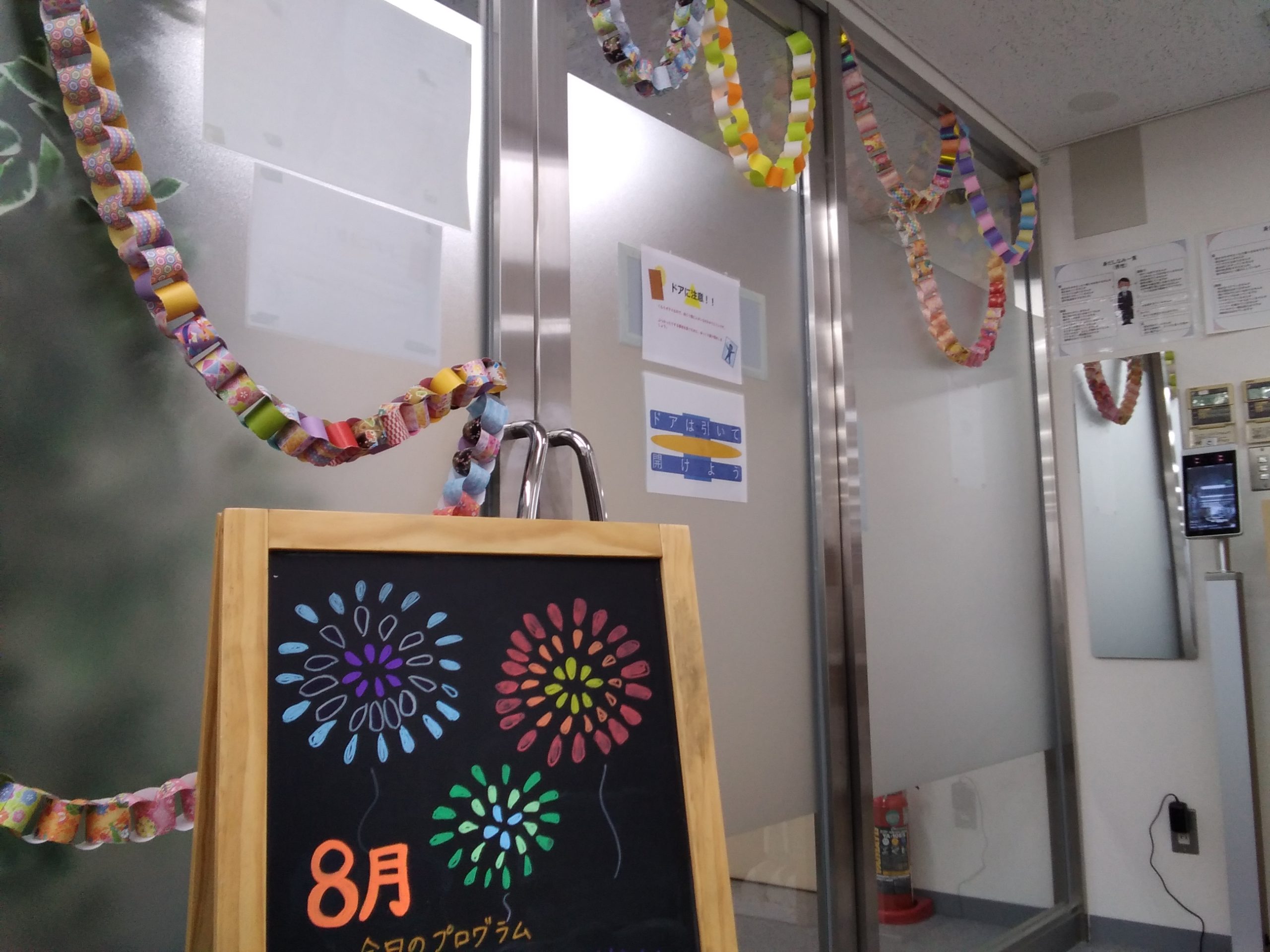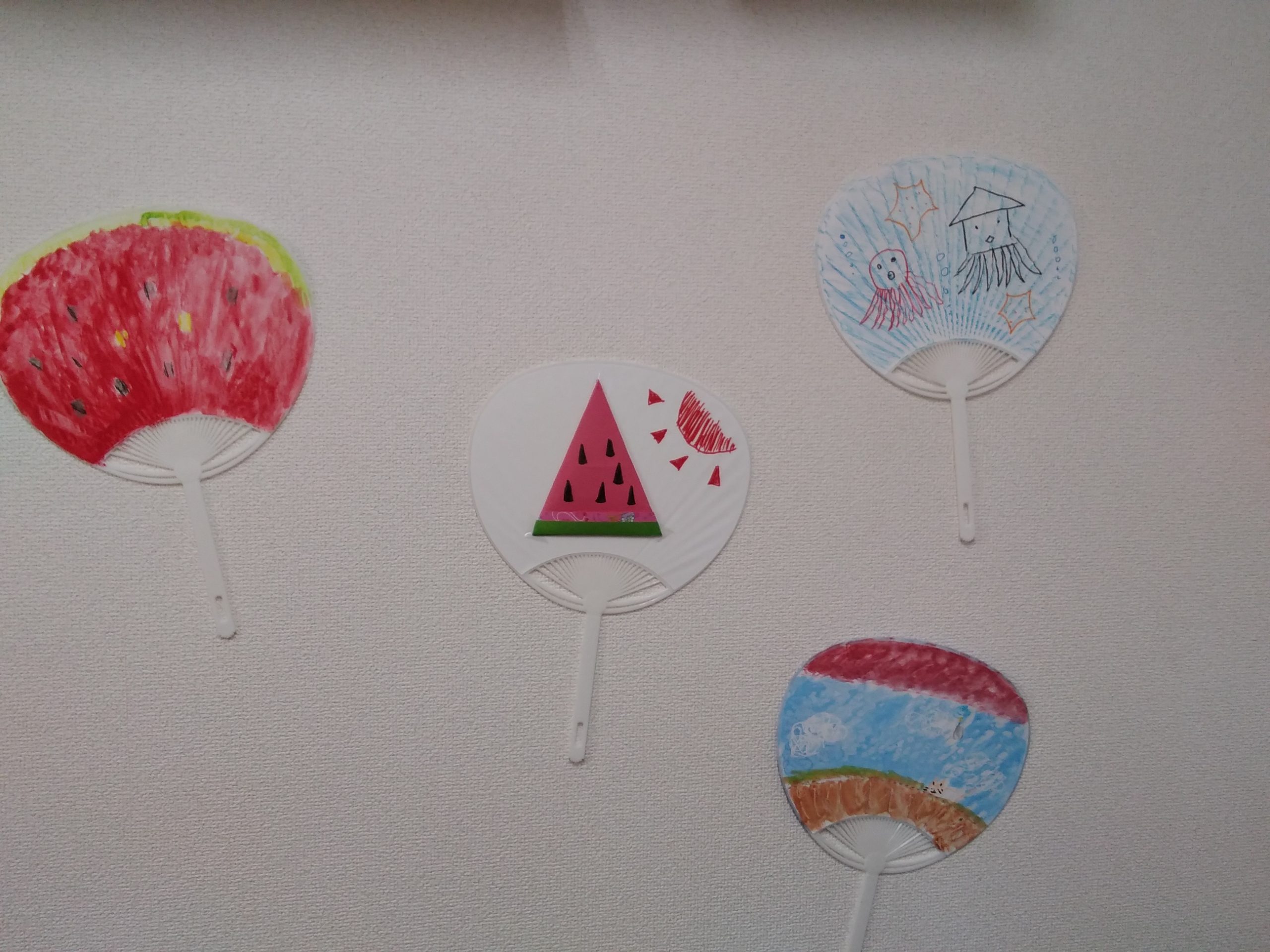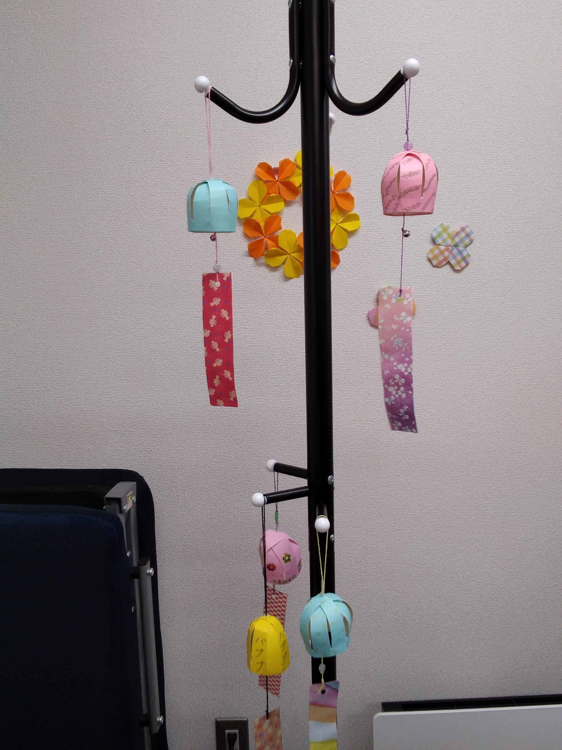 プログラムで作った風鈴や団扇もきれいに飾ってあります🎐